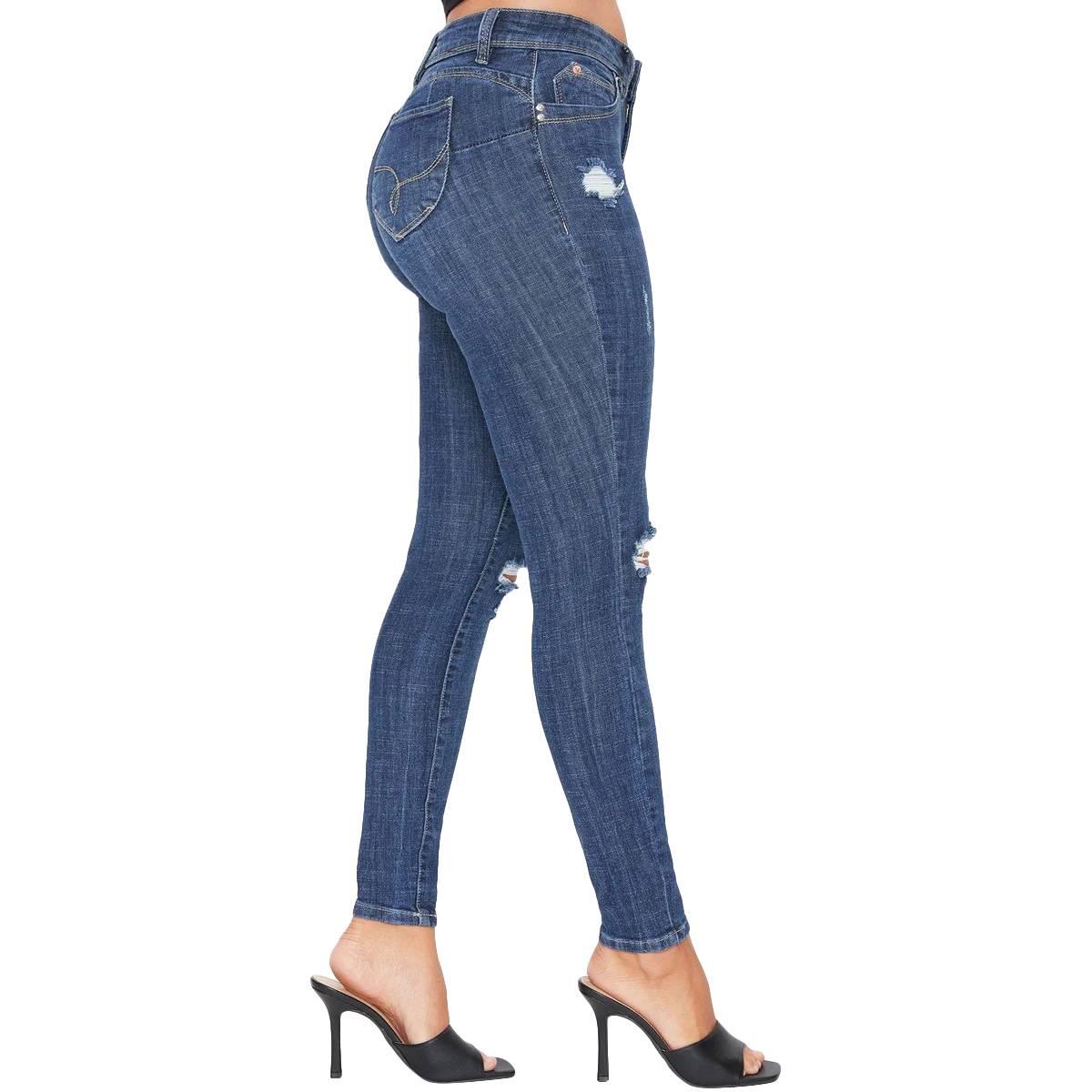 The Juniors YMI® Wanna Betta Butt Premium Distressed Skinny Jeans are a perfect stylish addition to your wardrobe. These mid rise denim bottoms feature classic 5-pocket construction, a single button and front zip closure, and belt loops.