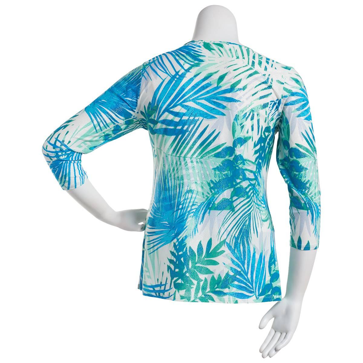 Add this Womens Emily Daniels tropical foil leaf print knit top to your wardrobe for your next vacation.