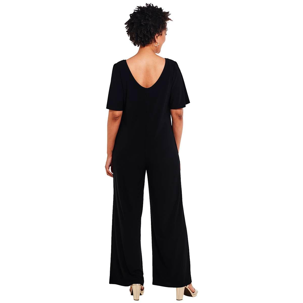 Description Pattern: SolidSleeve Length: Elbow SleeveNeck: V-NeckLeg Style: Wide LegO-ring neck designFlutter SleevePockets Inseam: 28 " Care: Line Dry, Machine Wash Material:...