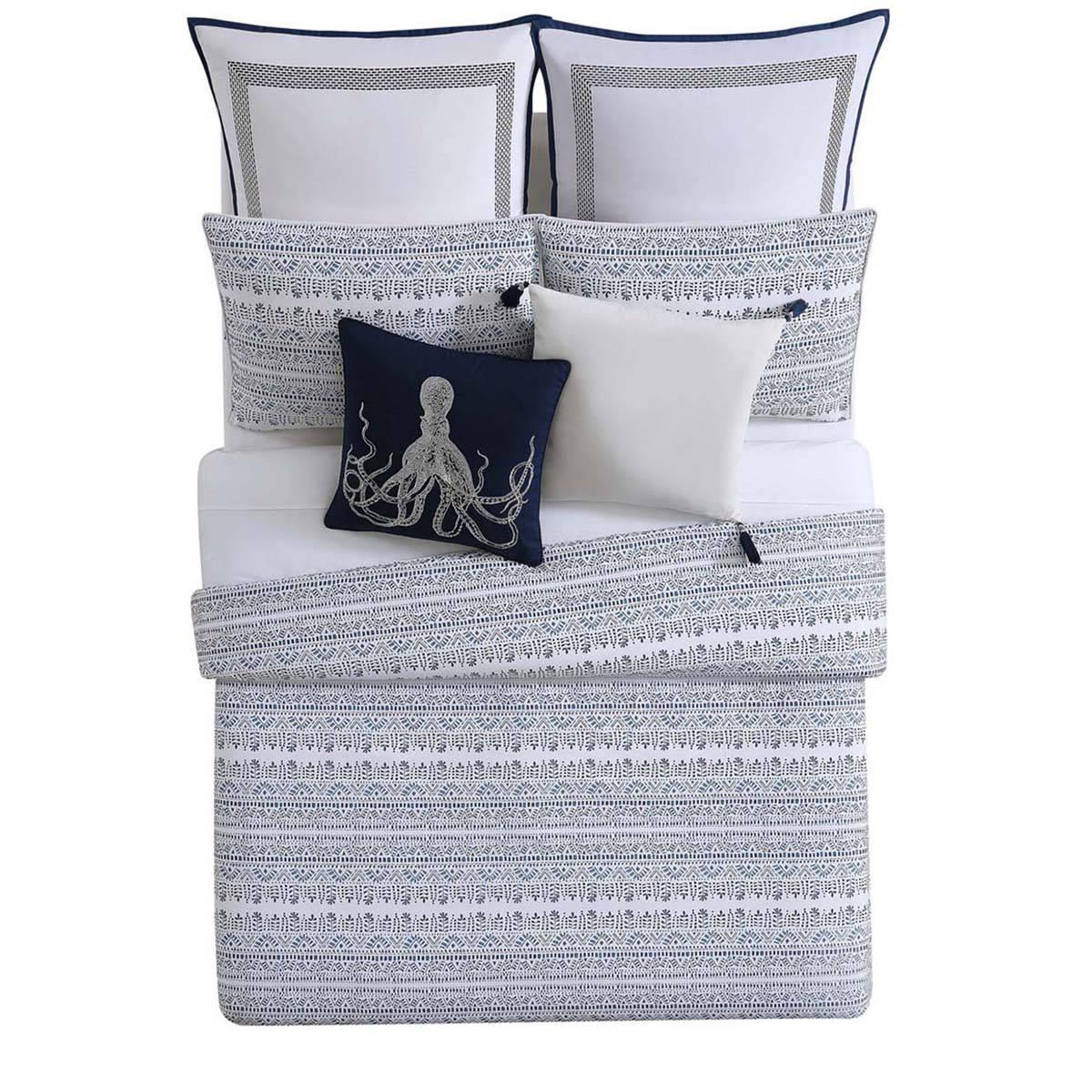This Oceanfront Resort Reef comforter set showcases a coastal inspired block pattern that is printed on the face. Its design includes a striped arrangement that will make a lovely addition to any room it is placed in.