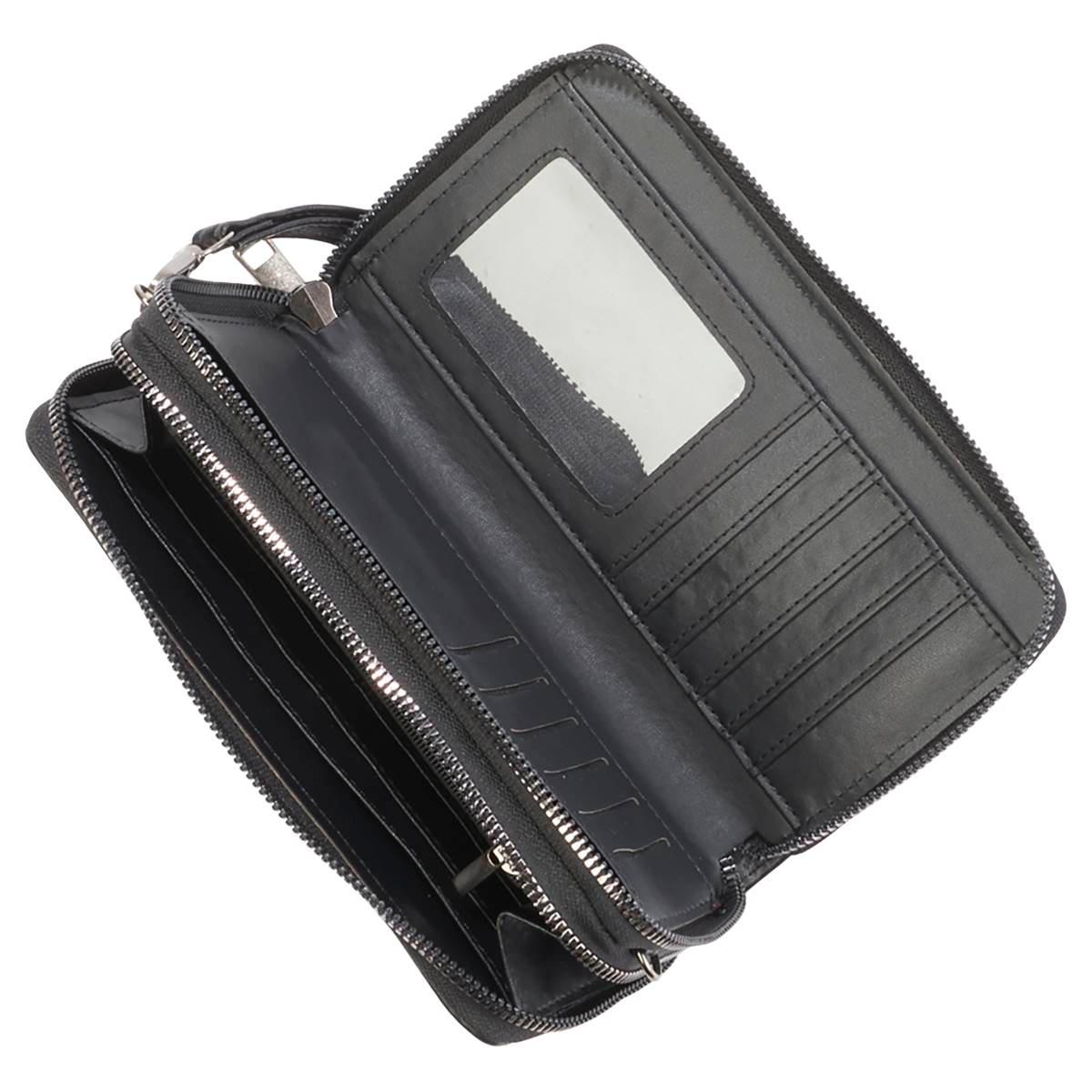 • Interior: 15 credit card slots, 3 slip pockets, 1 center zip pocket, 1 clear ID window