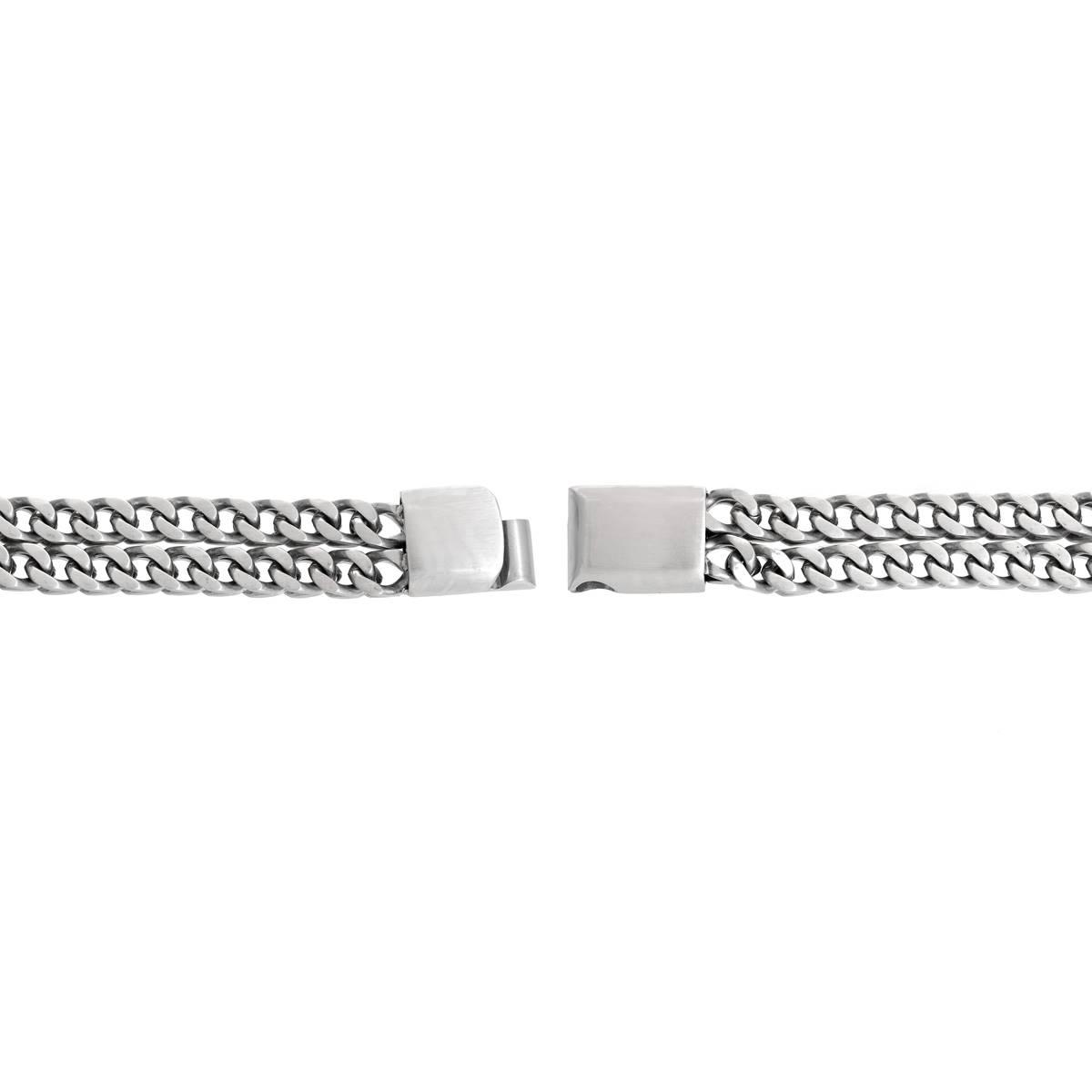 This Mens Lynx stainless steel two strands foxtail chain bracelet is a perfect addition to his jewelry wardrobe. The long bracelet is crafted in stainless steel and is secured with a magnetic clasp closure.