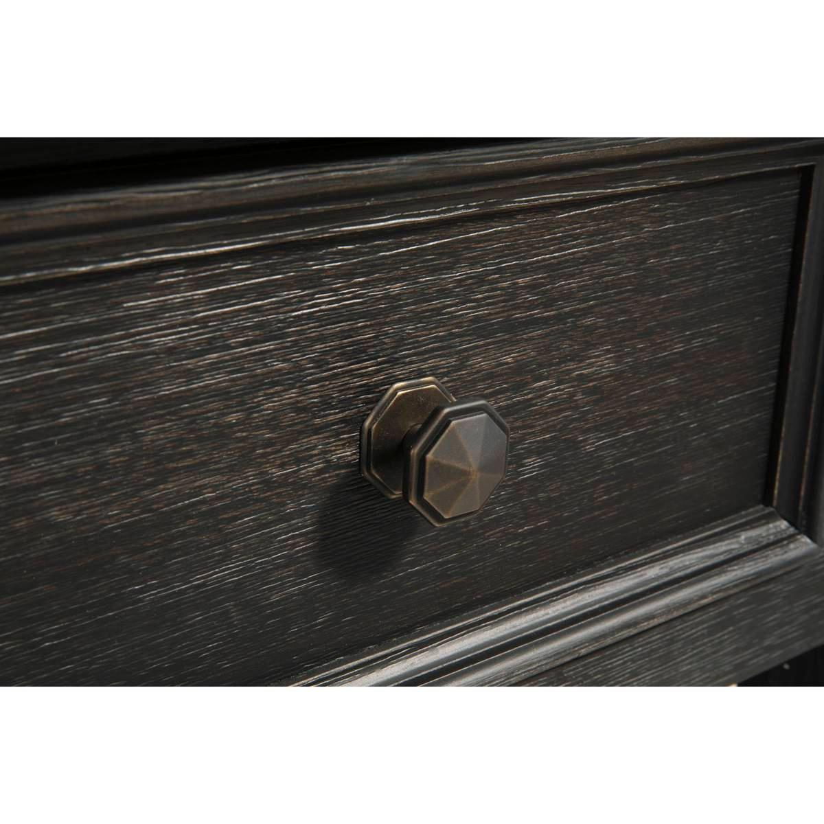 Shabby chic with a hint of down home country. The Signature Design by Ashley Tyler Creek end table is all the talk of today’s design world. Wood grain shows through the weathered grey-brown top in all of its earthy pleasure. The framed drawer is adorned with lovely traditional hardware.
