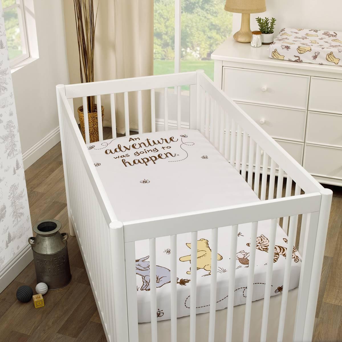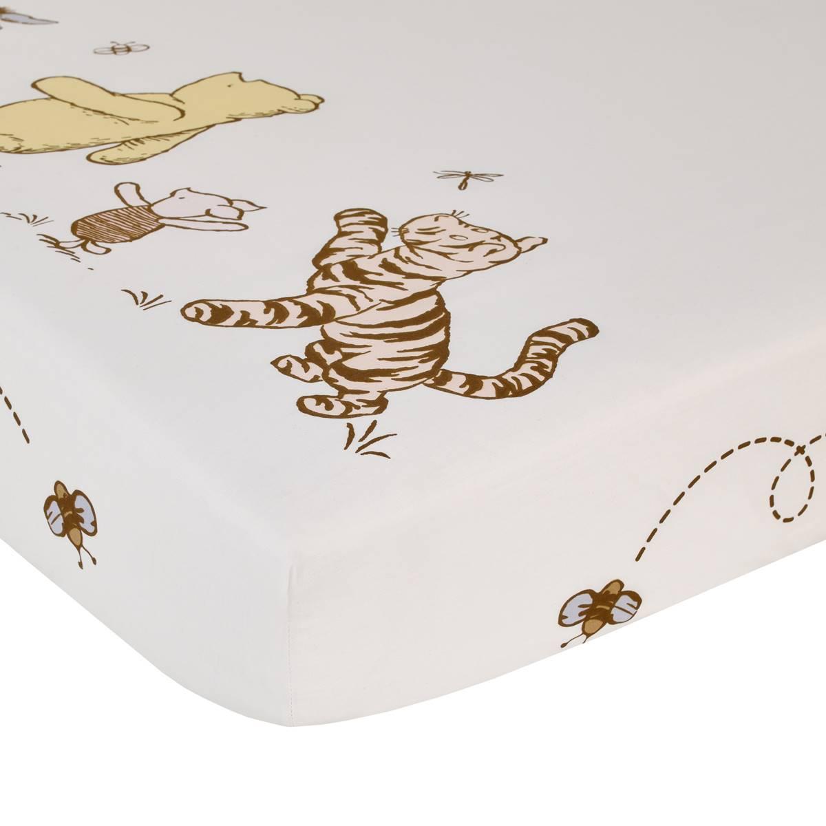 Description This Disney Classic Pooh Hunny Fun Photo Op Nursery fitted crib sheet is sweet like honey! Features a white ground with bees and all of the classic Winnie the Pooh...