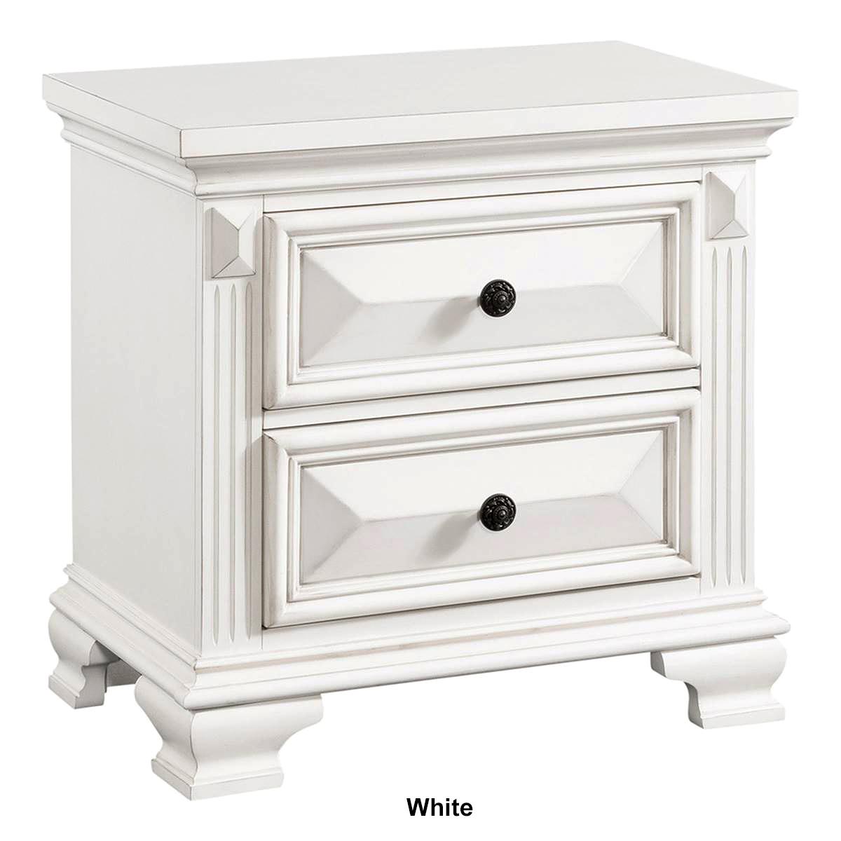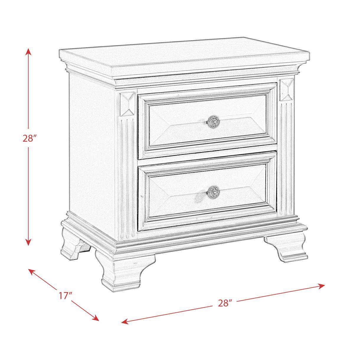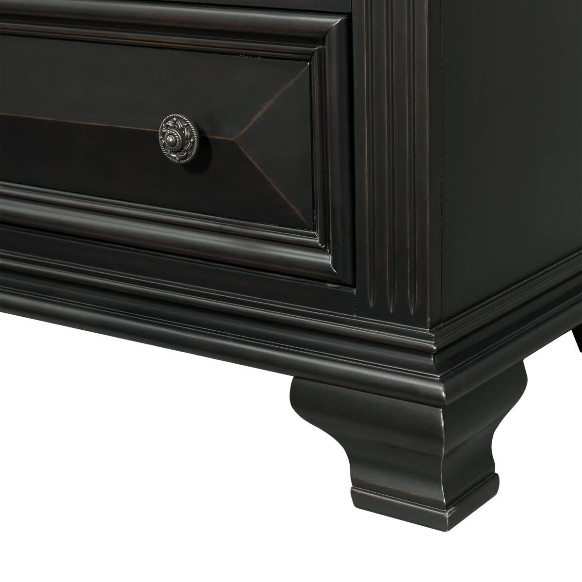 The Elements Calloway 2 drawer nightstand is the perfect piece to add your bedroom! This bed side staple comes with two spacious drawers with more than enough storage space to store away your belongings. The top drawer is felt lined, protecting your more delicate belongings. The bottom drawer is cedar lined and features a dust proofing layer to help protect your clothes. Raised drawer fronts add an extra element of design to this already stunning set. The dark metal finish hardware pairs perfectly with the antique finish, making this transitional group a staple in your home for years to come.