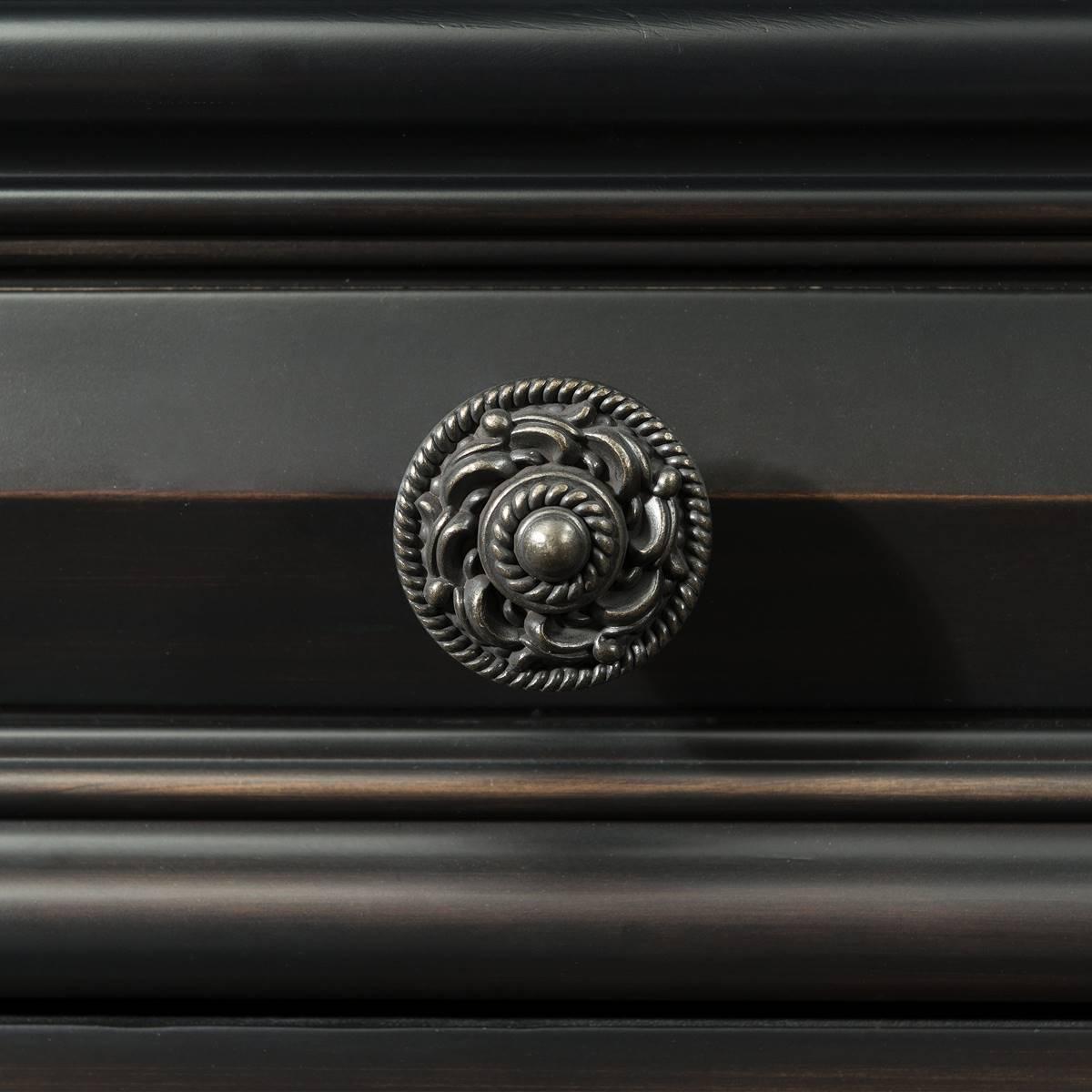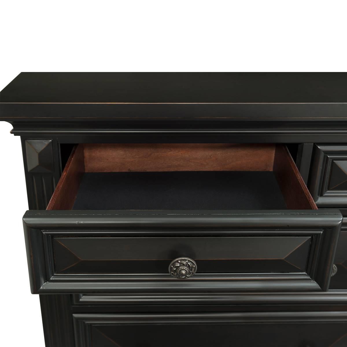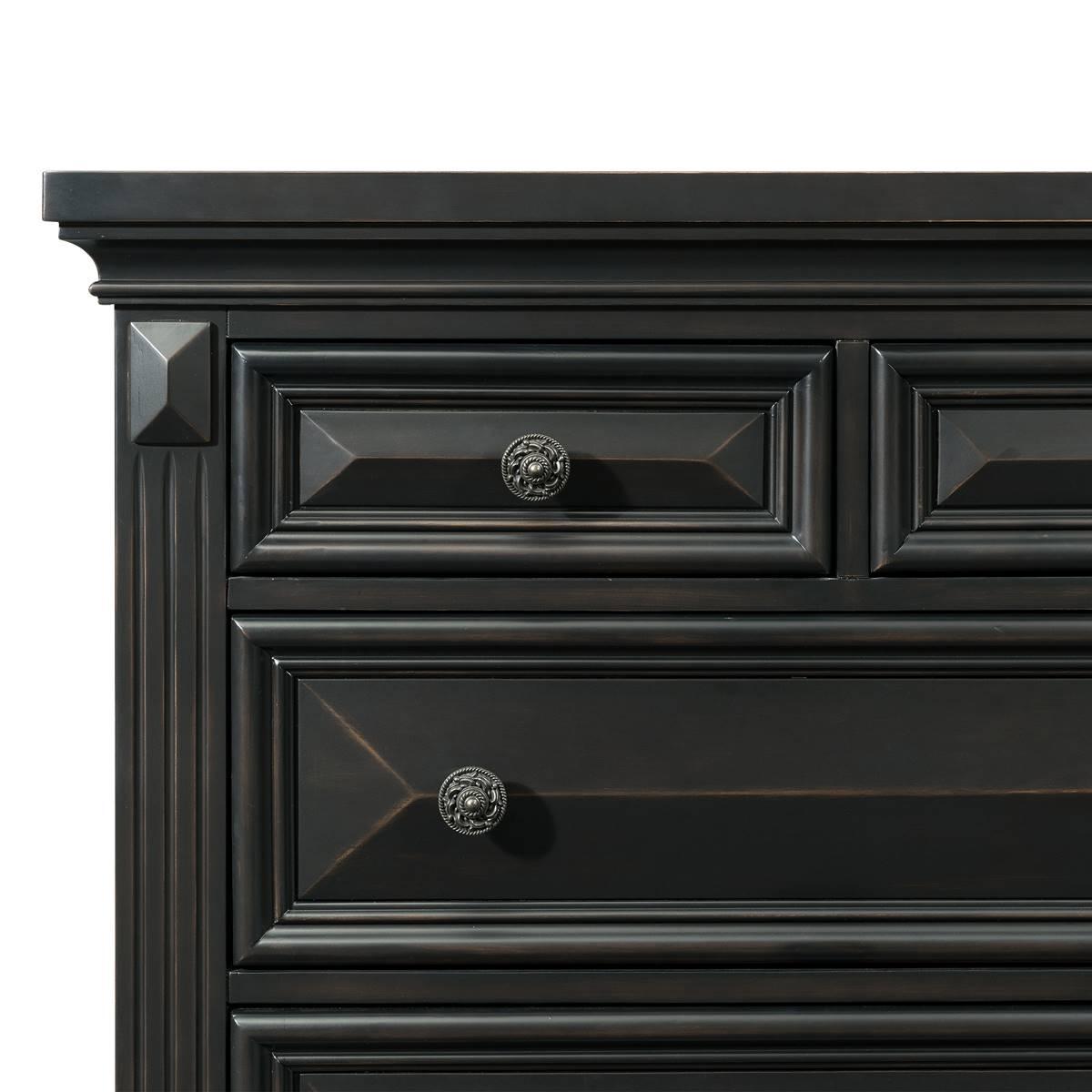 The Elements Calloway 2 drawer nightstand is the perfect piece to add your bedroom! This bed side staple comes with two spacious drawers with more than enough storage space to store away your belongings. The top drawer is felt lined, protecting your more delicate belongings. The bottom drawer is cedar lined and features a dust proofing layer to help protect your clothes. Raised drawer fronts add an extra element of design to this already stunning set. The dark metal finish hardware pairs perfectly with the antique finish, making this transitional group a staple in your home for years to come.