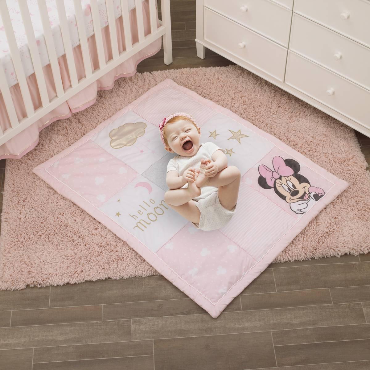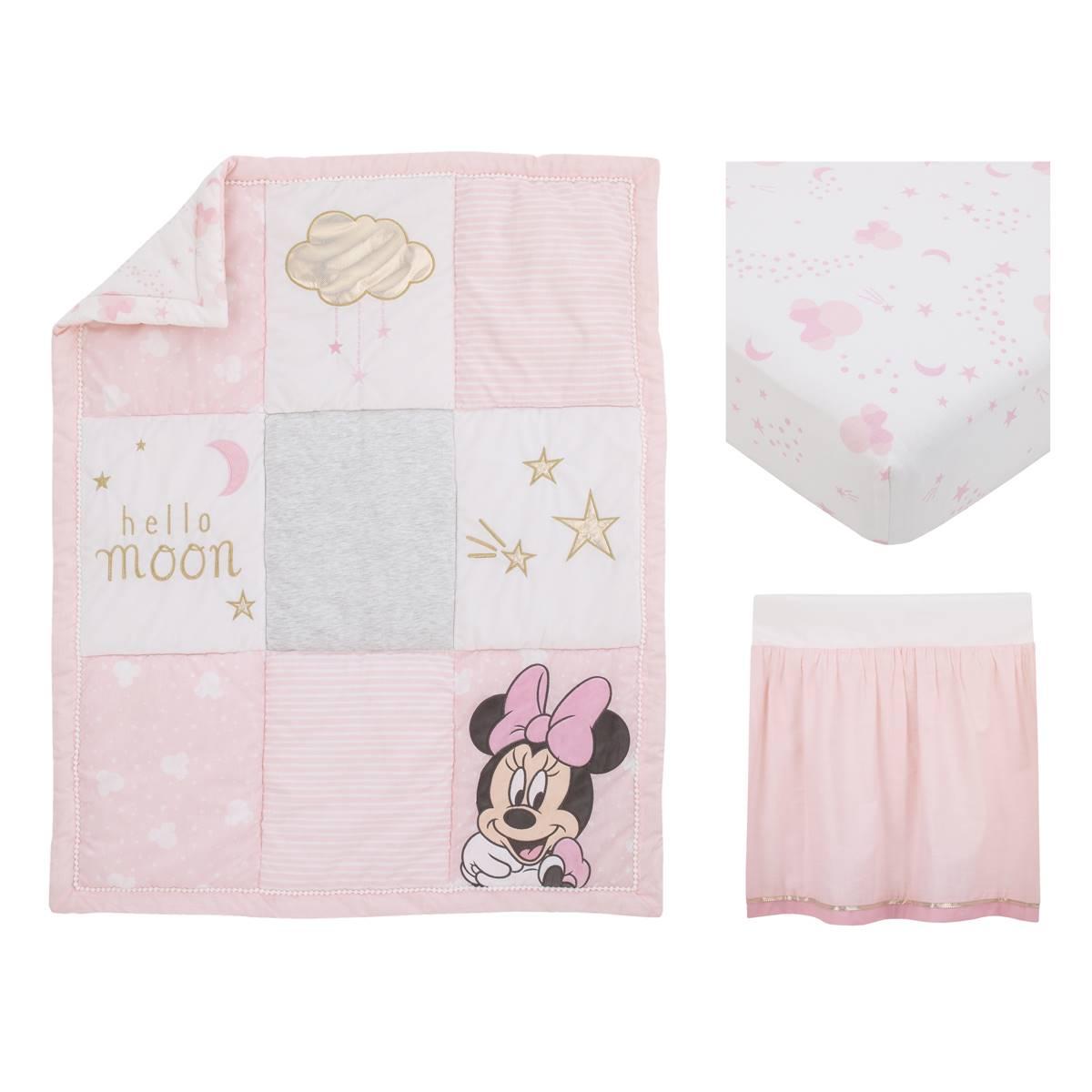 Description Make bedtime a magical adventure with the Disney 3-piece Minnie Mouse Twinkle Twinkle crib bedding set! All pieces are made of super-soft fabrics for a snuggly...