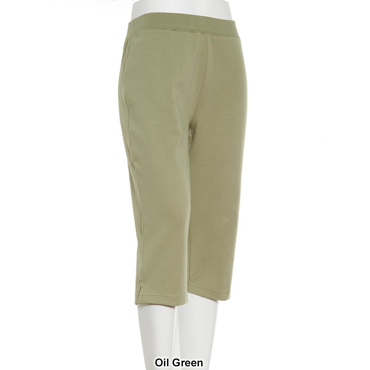 Description These stretch Petite Preswick & Moore® pull on knit clam diggers capri pants are a solid fitted design with an elasticized waist. Easy for pairing with casual tees...