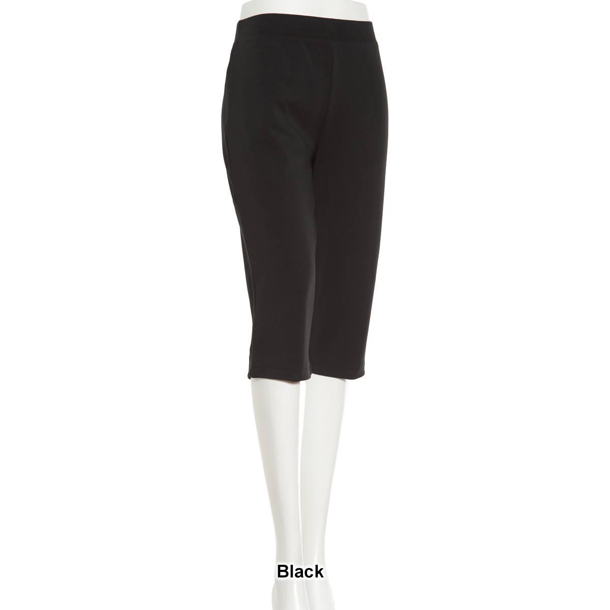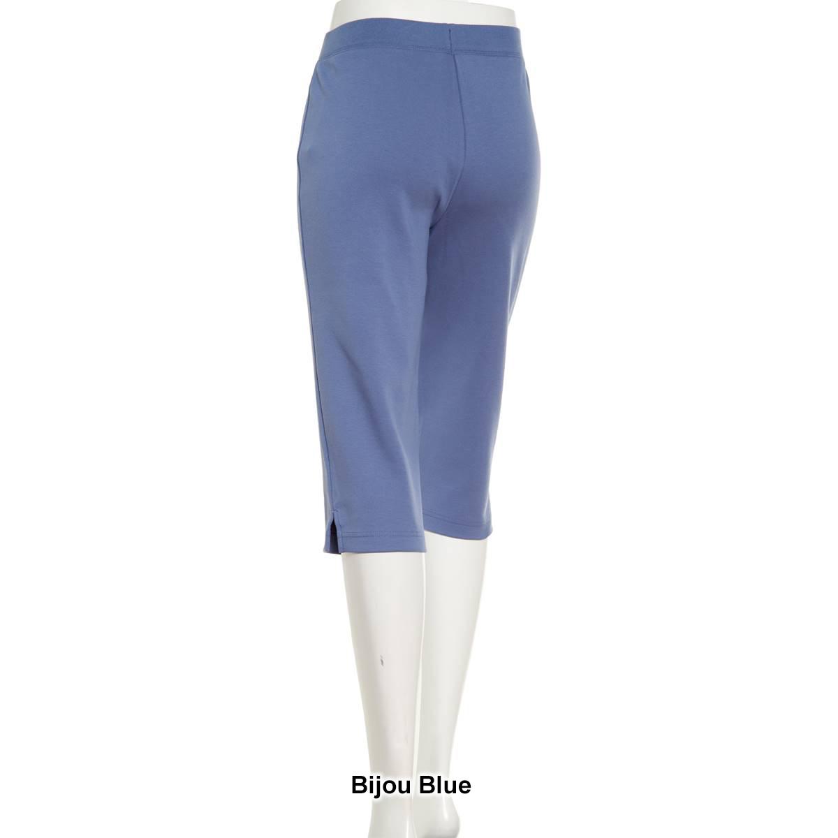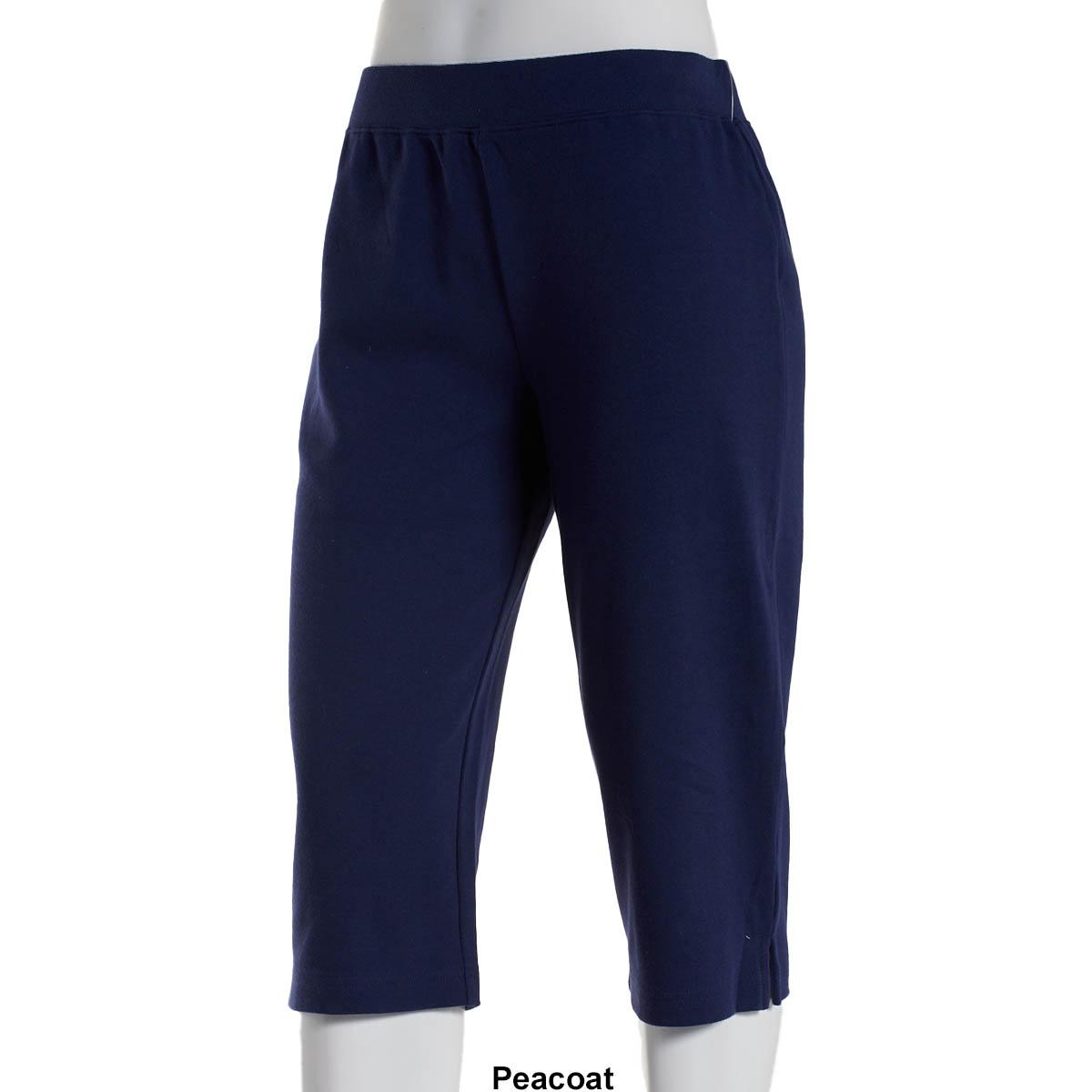 These stretch Plus Size Preswick & Moore® pull on knit clam diggers capri pants are a solid fitted design with an elasticized waist. Easy for pairing with casual tees or bold blouses.