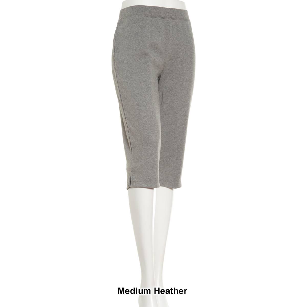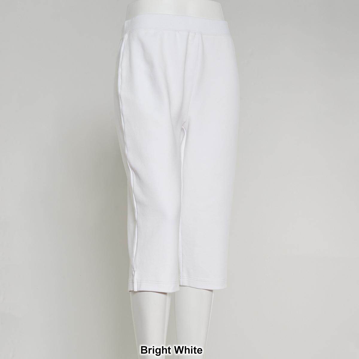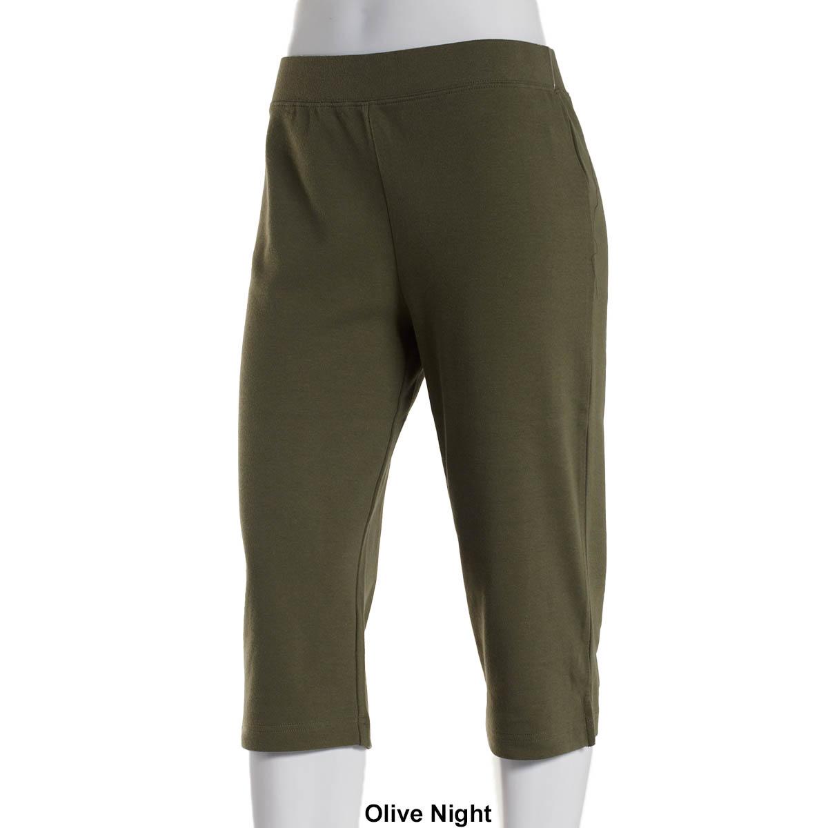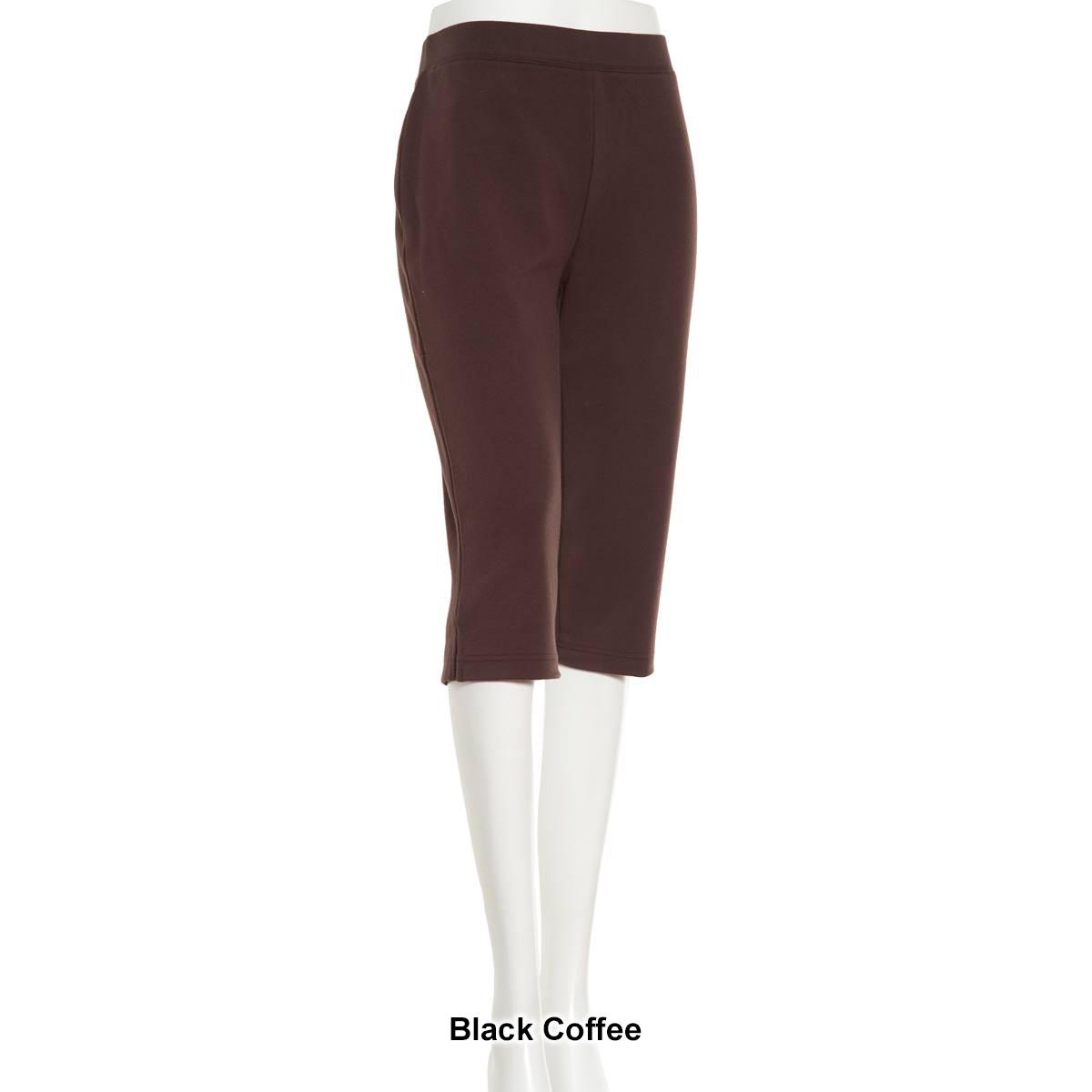 These stretch Plus Size Preswick & Moore® pull on knit clam diggers capri pants are a solid fitted design with an elasticized waist. Easy for pairing with casual tees or bold blouses.