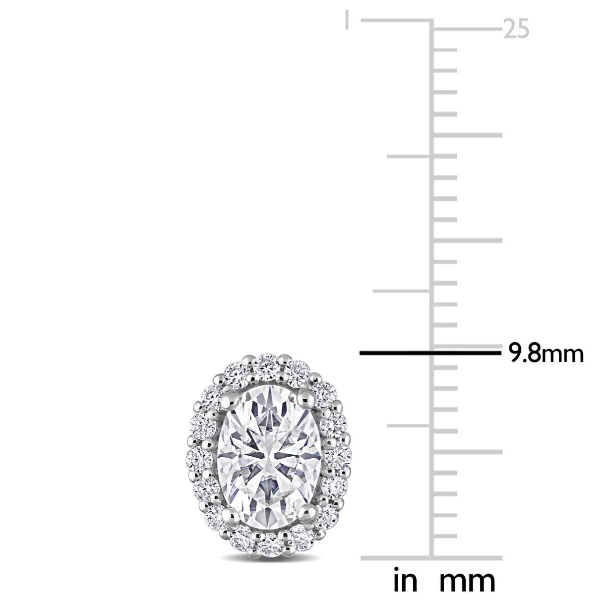 Description These Gemstone Classics™ 2 1/3ctw. oval-cut moissanite halo stud earrings are crafted in lustrous sterling silver. They feature two oval-cut and 32 round-cut...