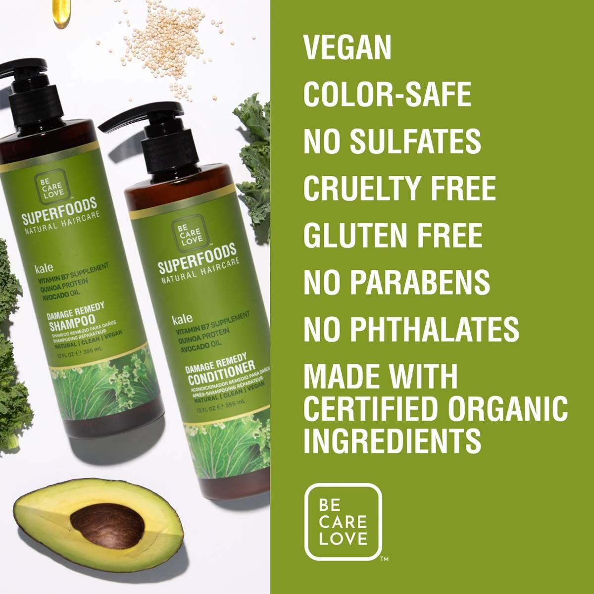 Damage Detox Conditioner helps protect and replenish moisture to split ends and brittle, damaged hair using nourishing Organic Superfoods. Antioxidant-rich Kale, Vitamin B7, Quinoa Protein, and Avocado Oil improve elasticity, strength, and resilience. Apply to freshly washed hair, focusing on the ends. Leave on as long as desired. Rinse thoroughly with warm water. For best results, use with SuperFoods Damage Detox Shampoo.Benefits: