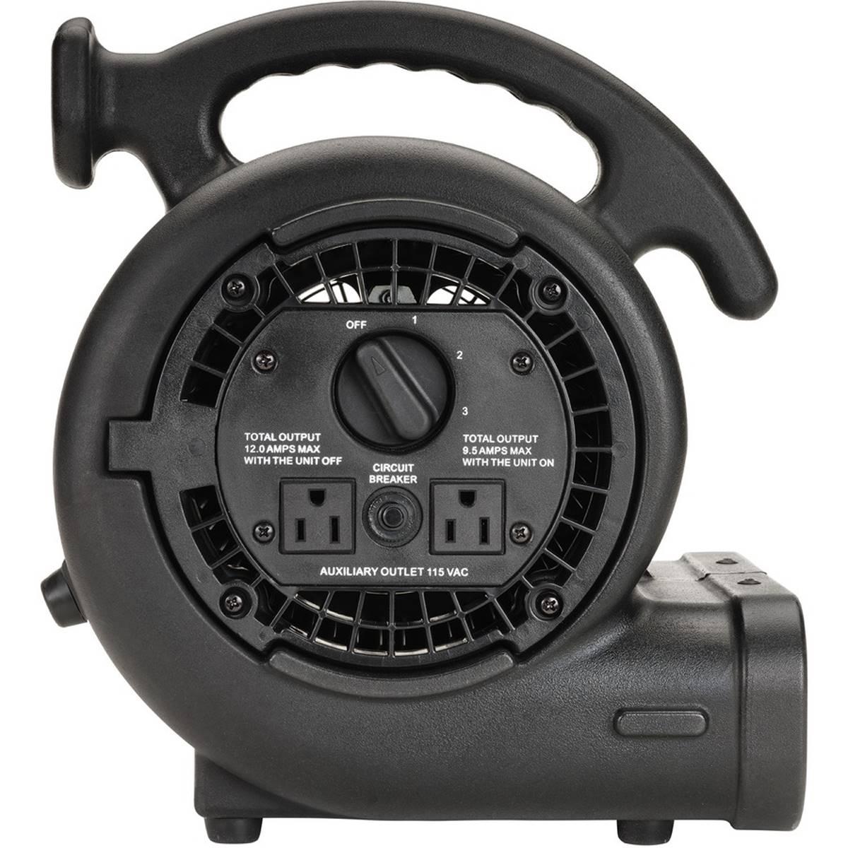 The Lasko Super Fan Max Air Mover cools rooms fast and is ideal for large-area ventilation. The pivoting blower directs air where it is needed most. The powerful fan features 3 high-velocity speeds to quickly cool, exhaust, and dry your space. With the two 120-volt outlets, you can connect 2 or 3 fans for rapid comfort or plug in other accessories. Features a circuit breaker with a reset button and an easy-grip handle for easy portability. The 10-foot cord makes it easy to plug this fan into the nearest outlet. This powerful fan is perfect for workspaces, garages, basements, and more. 1-year limited manufacturer warranty.