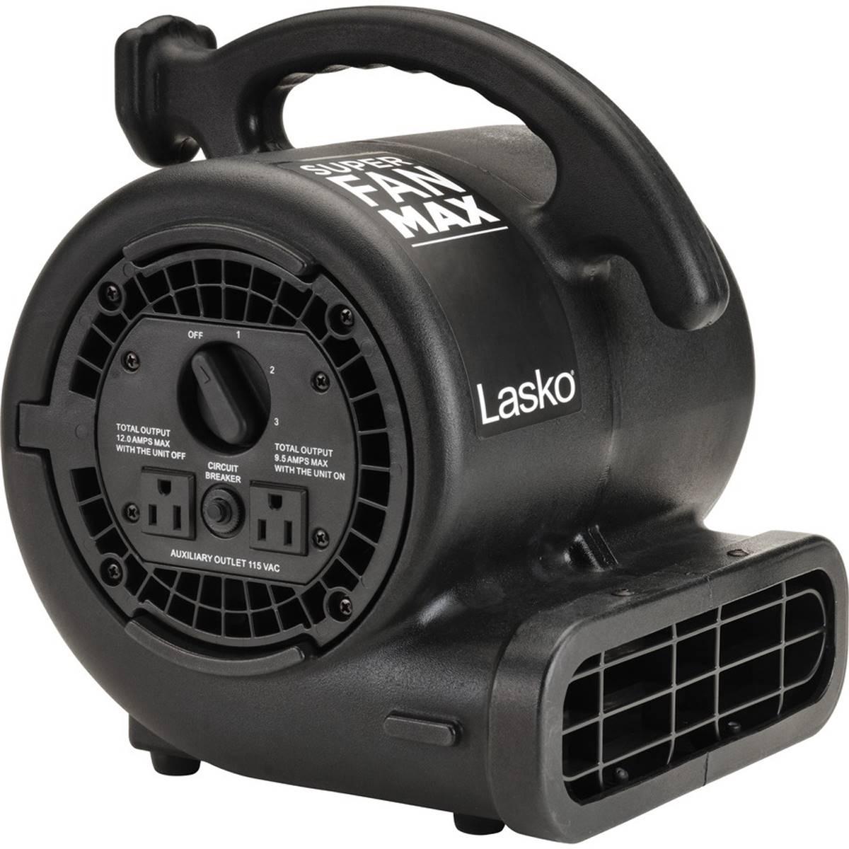 Description The Lasko Super Fan Max Air Mover cools rooms fast and is ideal for large-area ventilation. The pivoting blower directs air where it is needed most. The powerful fan...