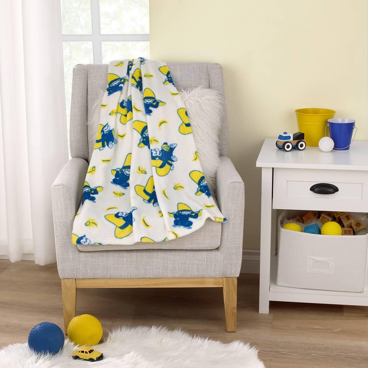 Description Cuddle your baby in cozy comfort with the NBC Curious George baby blanket! Features in a playful allover pattern of Curious George with the big yellow hat atop his...