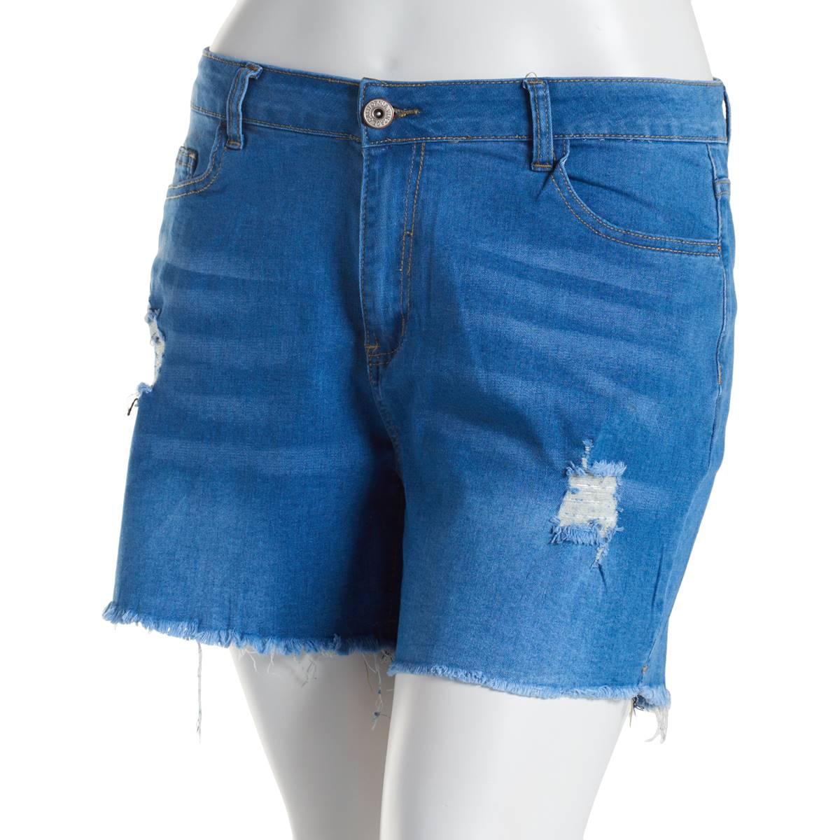 Juniors Plus California Vintage Distressed & Frayed Denim Shorts