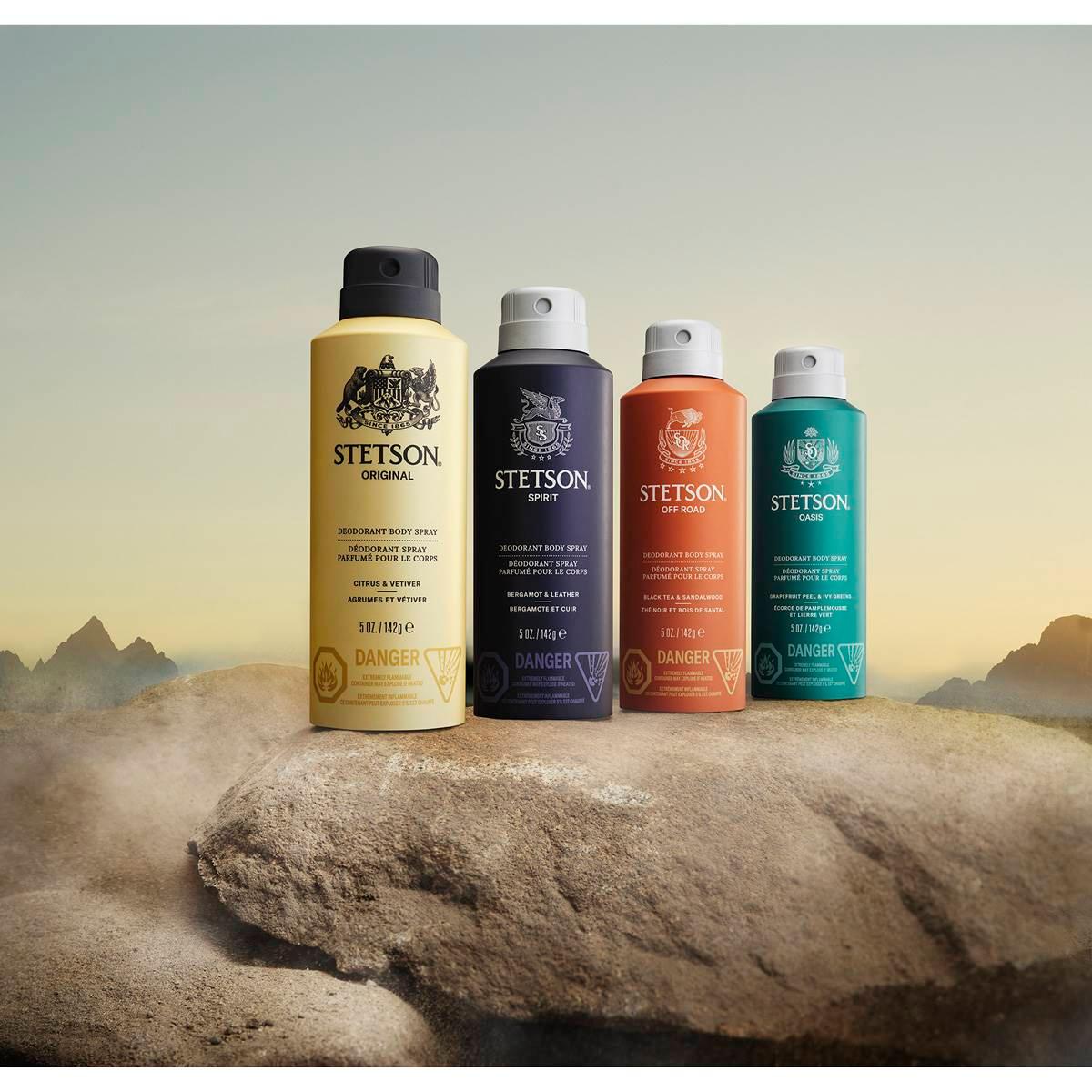 Stetson Oasis 5-ounce All Over Body Spray instantly refreshing, long lasting with an exquisitely crafted green scent. A lush pathway to your green sanctuary with notes of Grapefruit Peel & Ivy Greens.Fragrance Profile: