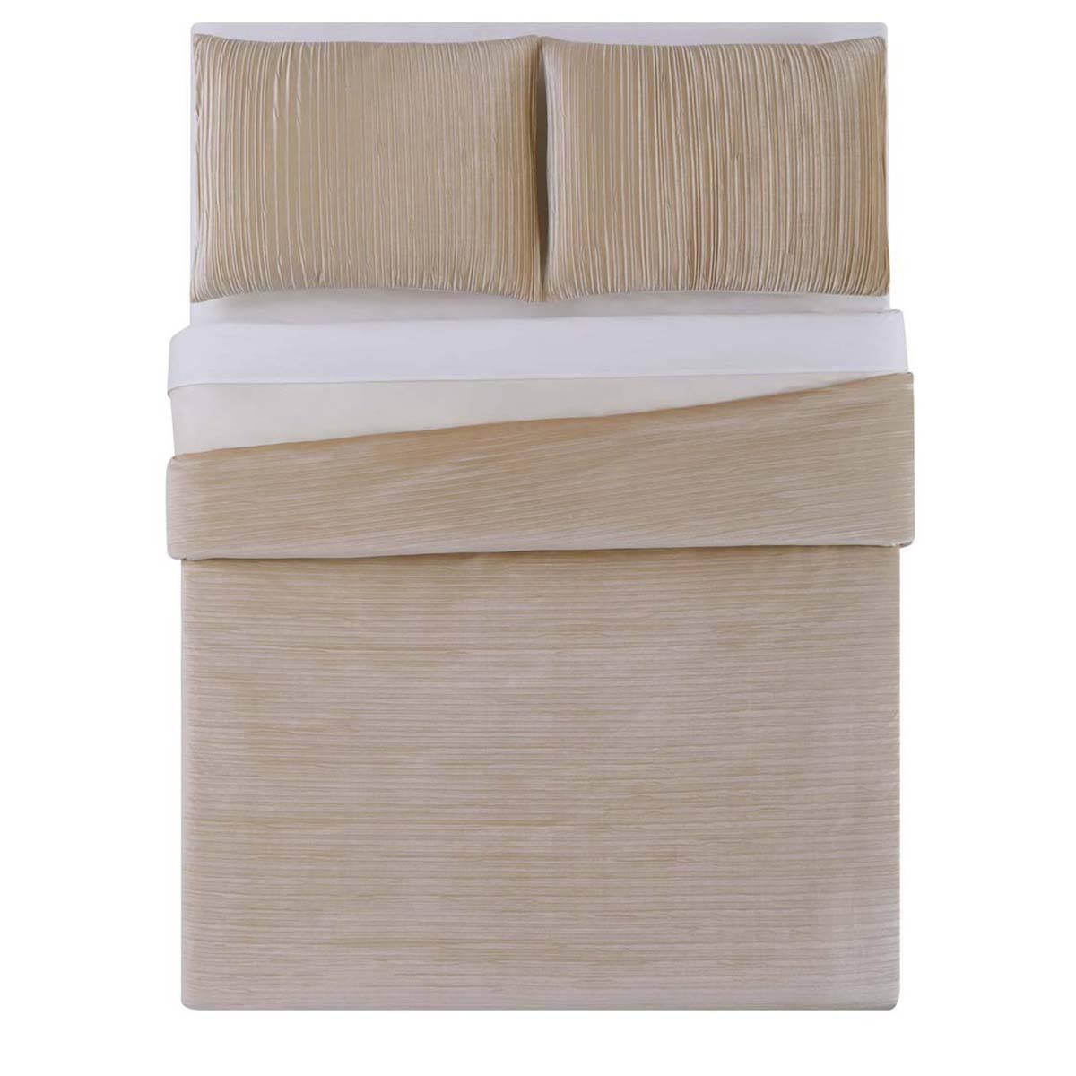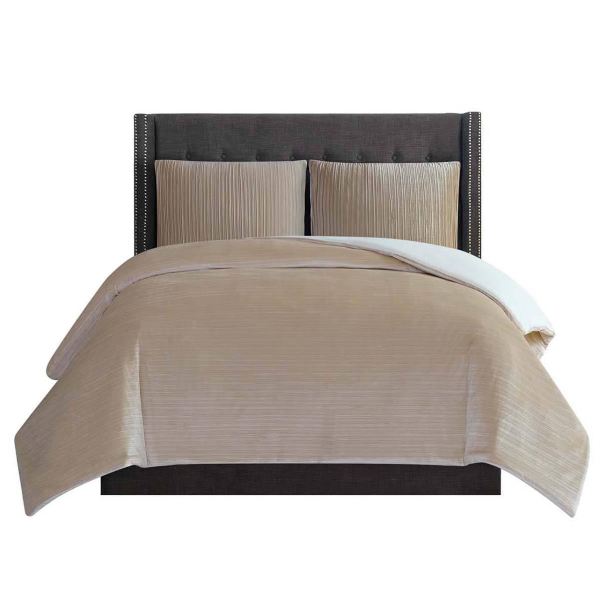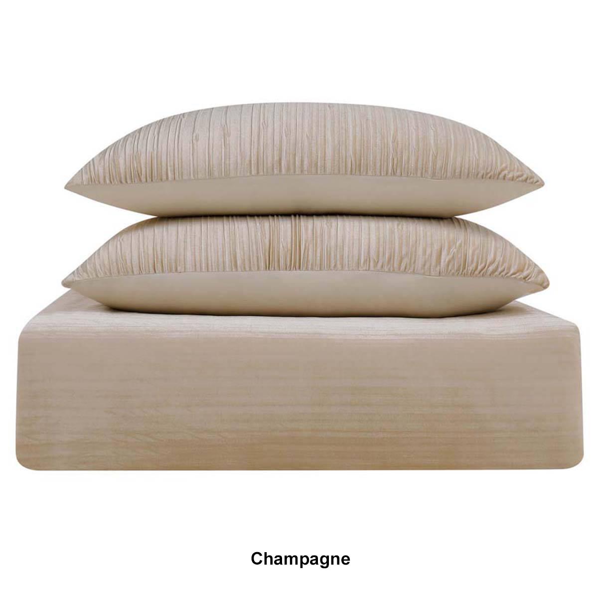 This Christian Siriano New York® crinkle velvet comforter set is fashion forward with metallic shades in a crinkle style velvet face. This beautiful set will make a lovely addition to any room it is placed in.