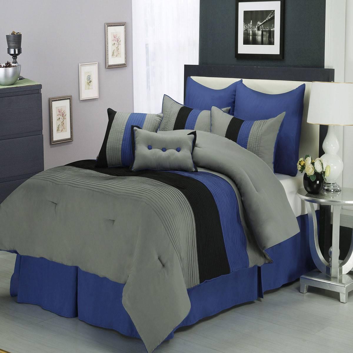The contemporary and refined look of the Superior Florence 8-piece modern bedding set will give your bedroom an instant makeover. The hypoallergenic, down alternative comforter, is plush to the touch while keeping you warm all season long. Instantly give your bedroom a whole new look and feel with the included two euro shams, two pillow shams, one-bed skirt, and two accent pillows.