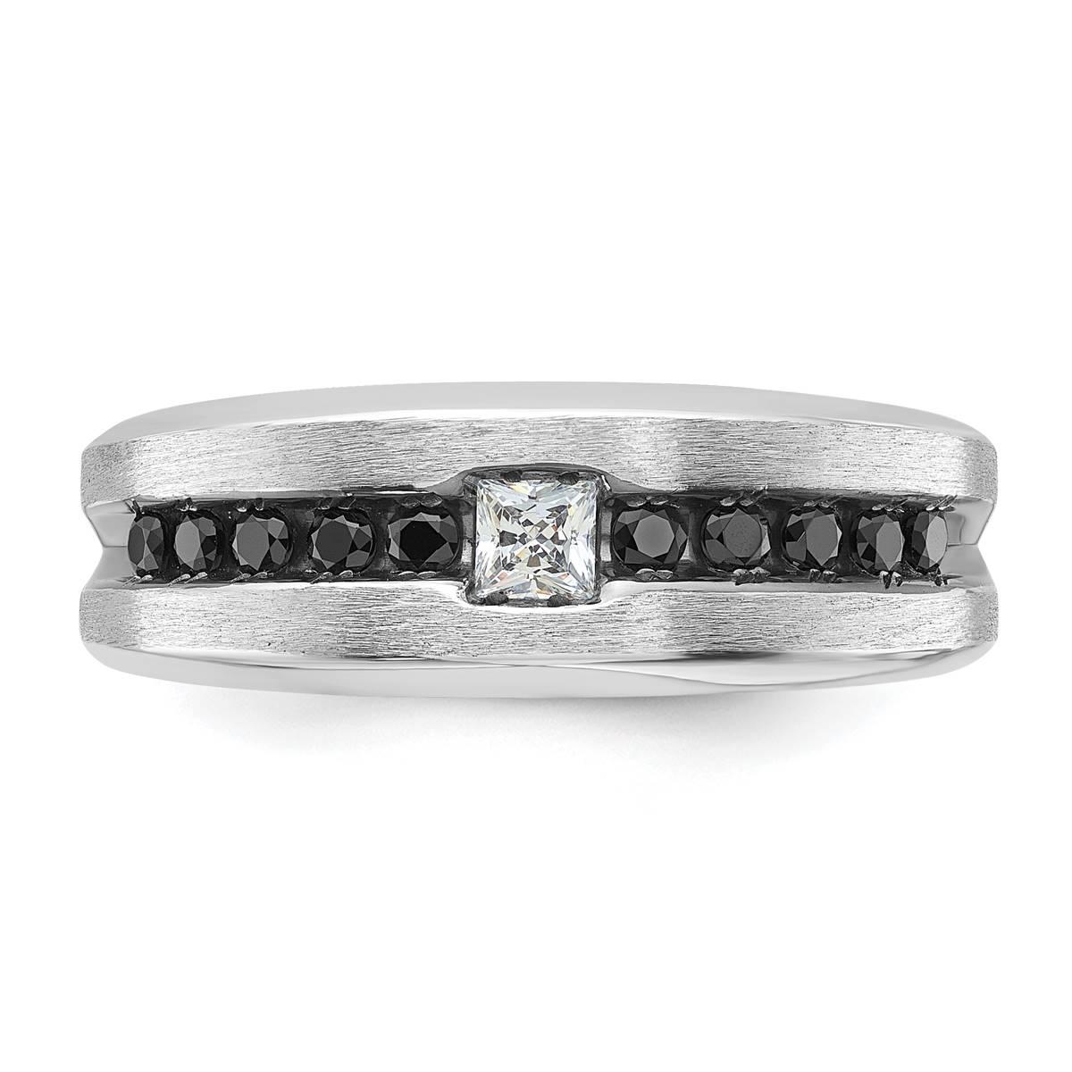 Proclaim your distinguished style with this Mens Gentlemen’s Classics™ 14kt. white gold square diamond ring. It is adorned with a single white diamond in the center topped by black round diamonds on the sides for a charming appeal.