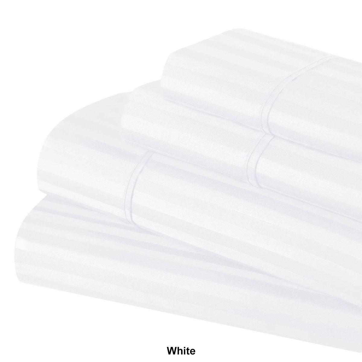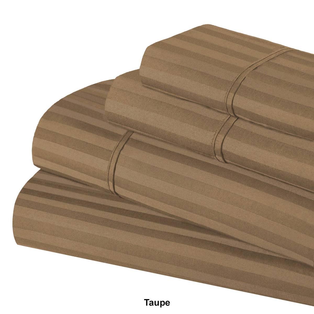 Sleep soundly and enjoy a restful night with this Superior 300 thread count Egyptian cotton striped deep pocket sheet set. They boast a rich, silky-smooth feel and a luminous sheen from the sateen weave finish. The extra-long fibers of Egyptian cotton are spun into fine, strong yarns making this material breathable, plush, and more durable than other varieties of cotton.