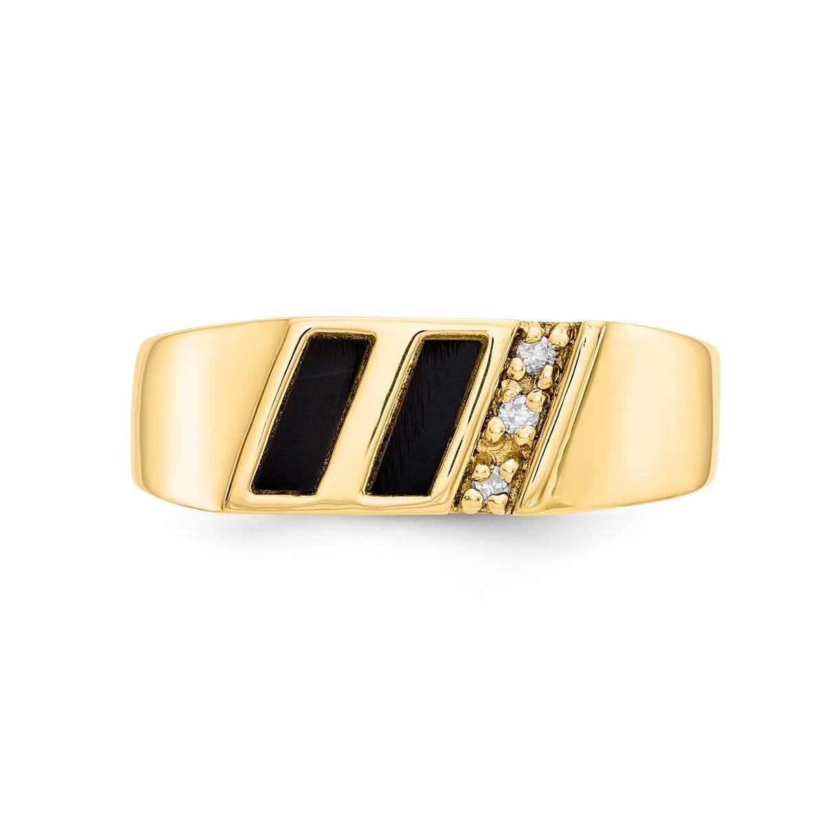 Description Exude a luminous look with this Mens Gentlemens Classics™ 14kt. gold onyx & Diamond accent ring. Decorated with black onyx gemstones and dazzling I1 clarity round...