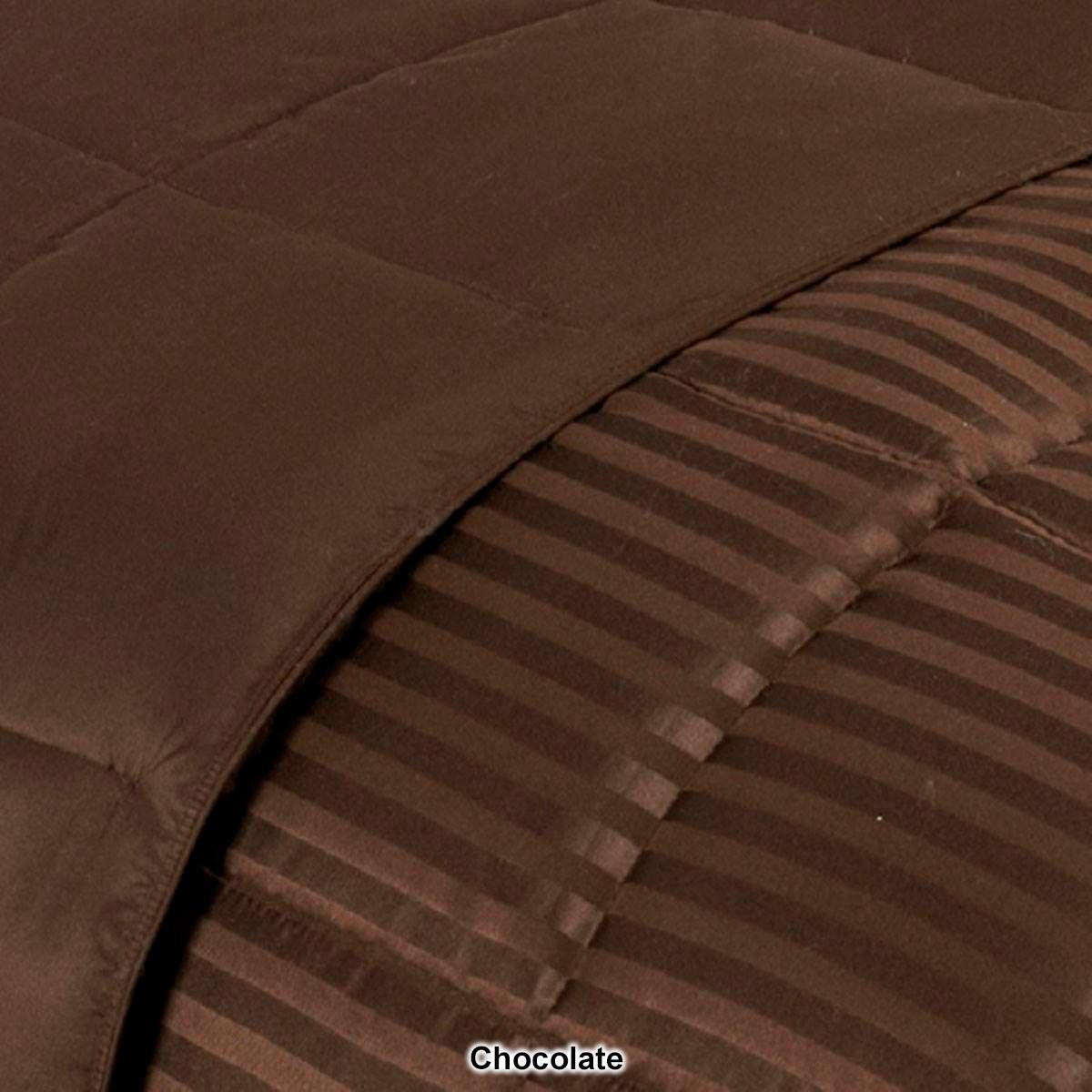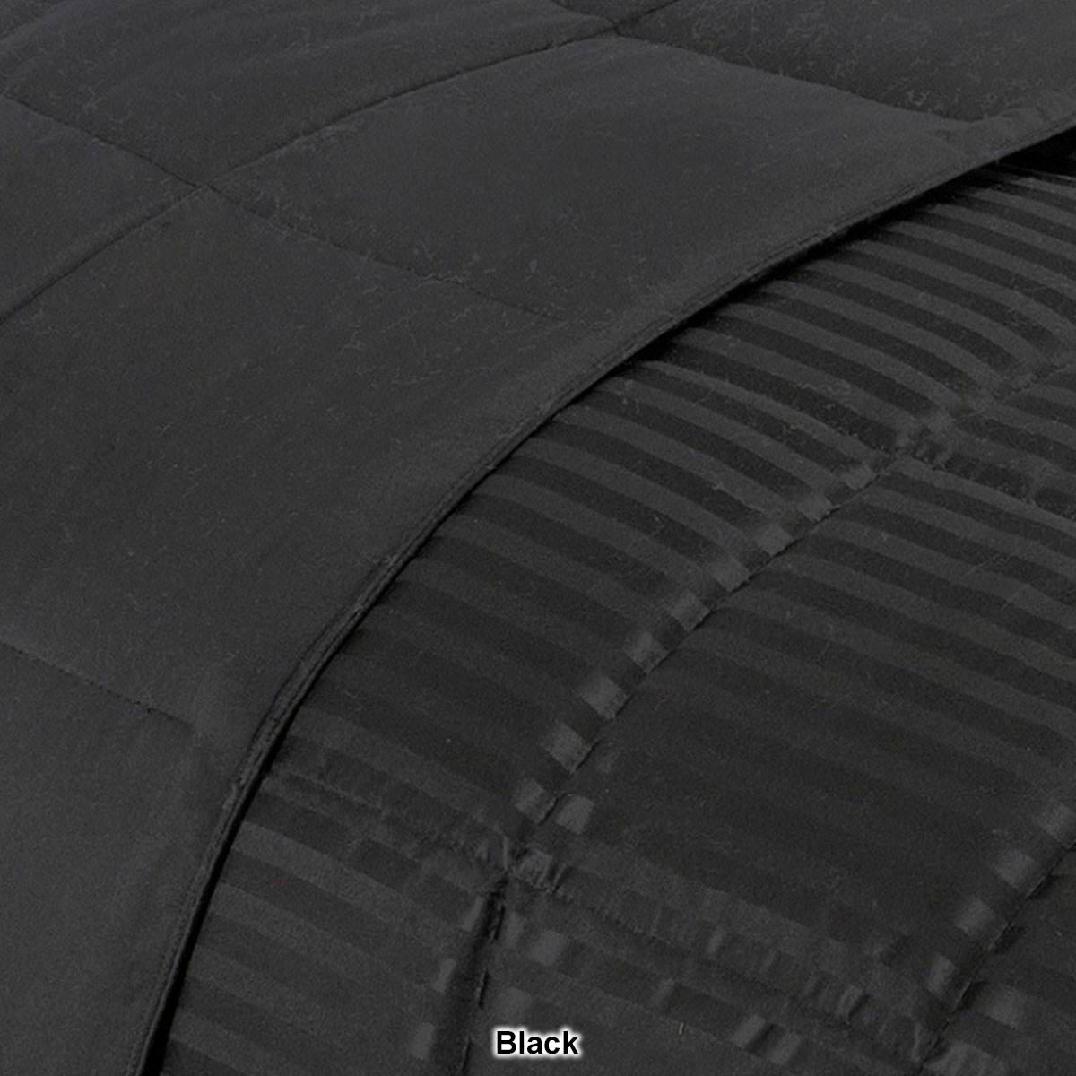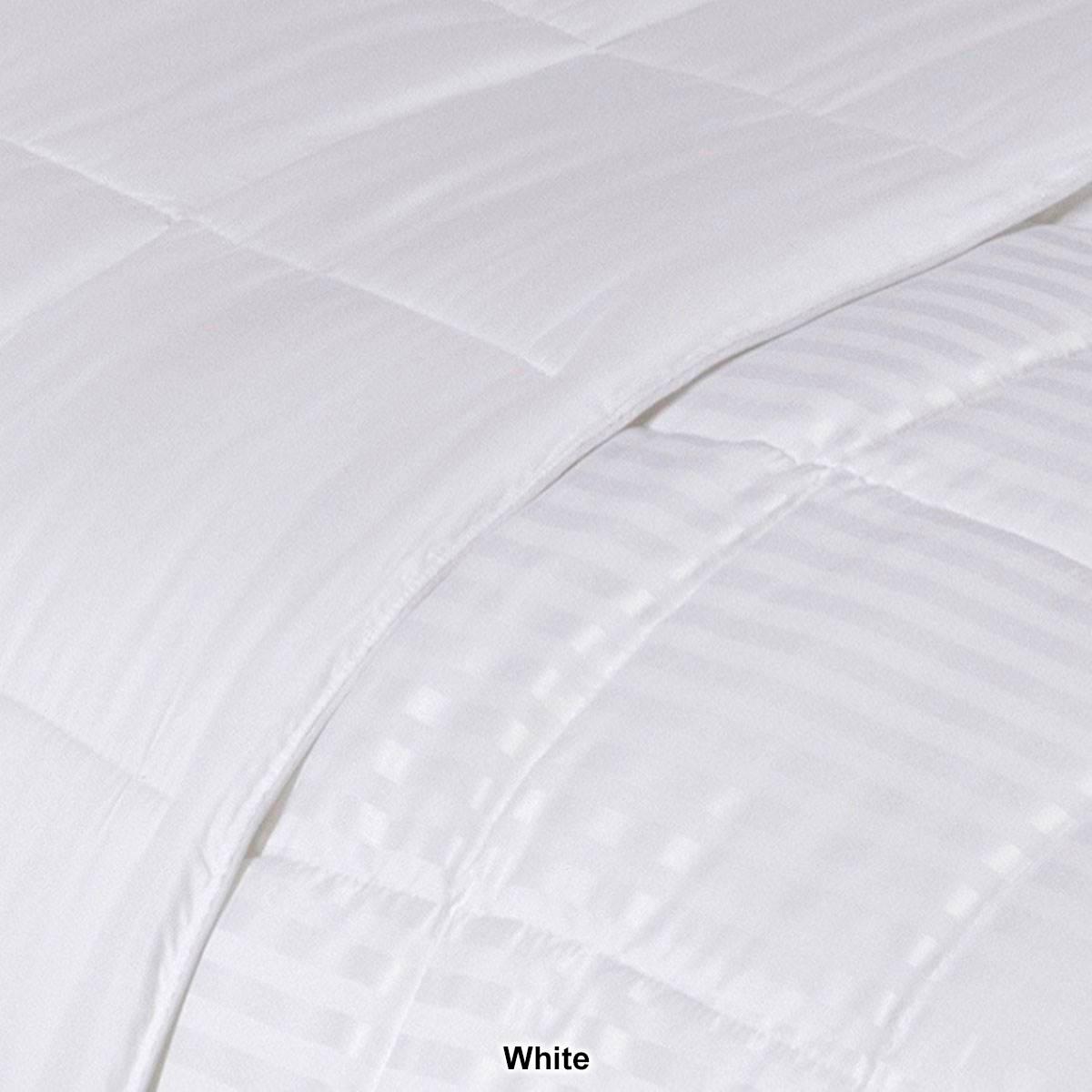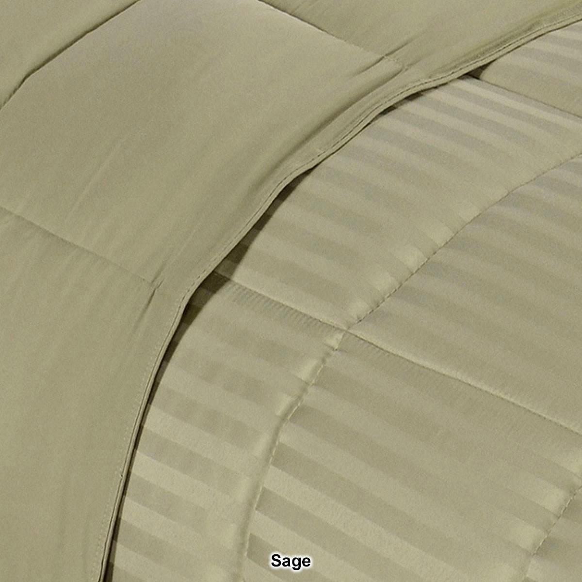 Description Slip under the covers and sink into the Superior Reversible Down alternative blanket. This design features stripes on one side with a solid reverse that looks...