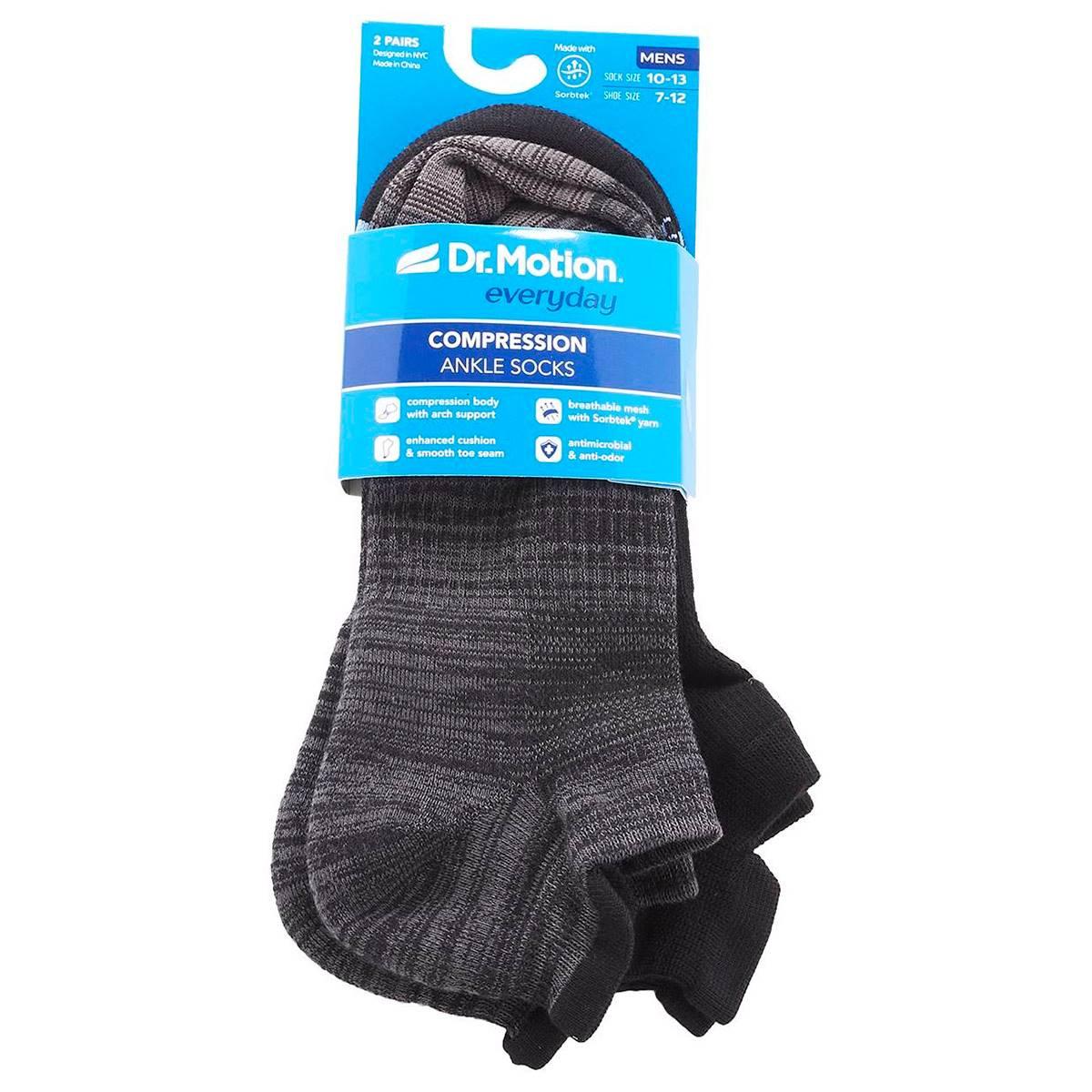 Mens Dr. Motion® 2pk. Free Feed Compression Ankle Socks