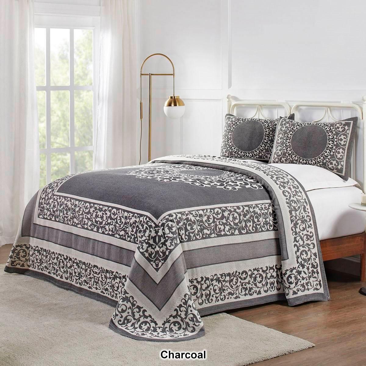Stay in bed all day with this Superior Boho Mandala lightweight woven jacquard oversized bedspread set. Can be used year-round either on top of the bed while simultaneously working as a decorative accent or used as an added layer during the colder winter months. The intricately patterned large-scale center mandala brings a rich textural layer to your bed, while the coordinating border surrounding the mandala lends a tailored finish to this beautiful bedspread.