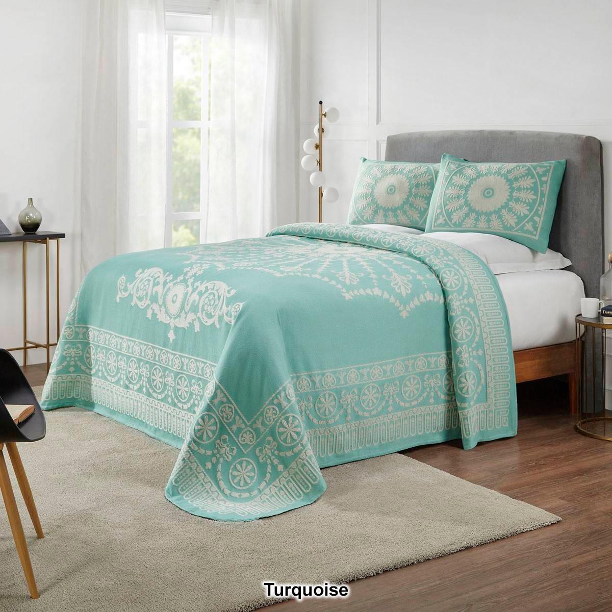 Give your bedroom a bohemian refresh with the Superior Traditional Medallion jacquard bedspread set. Brings relaxed elegance to your bedroom, and the included pillow shams mirror the design of the bedspread to give your bed a finished look.