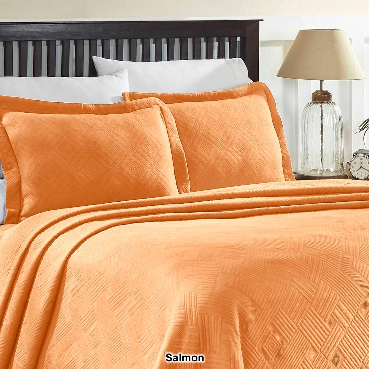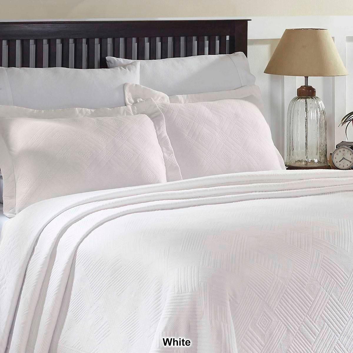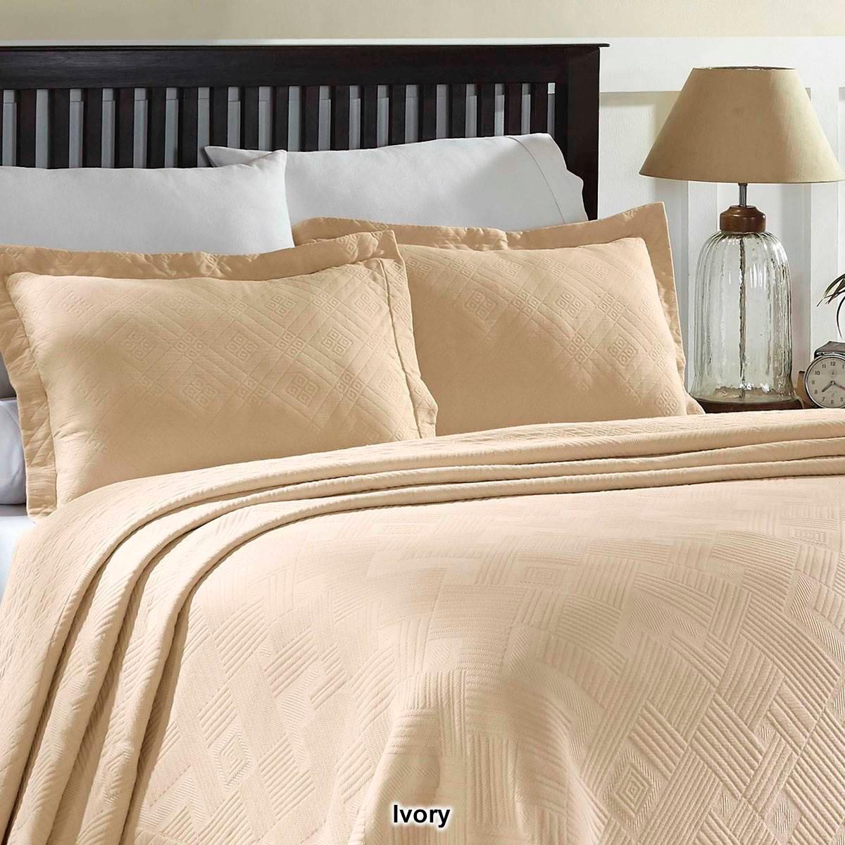 Description Drift into a peaceful sleep with the Superior Geometric Matelasse Scalloped bedspread set. Drape your bed in elegance with the highest quality, soft, premium cotton...