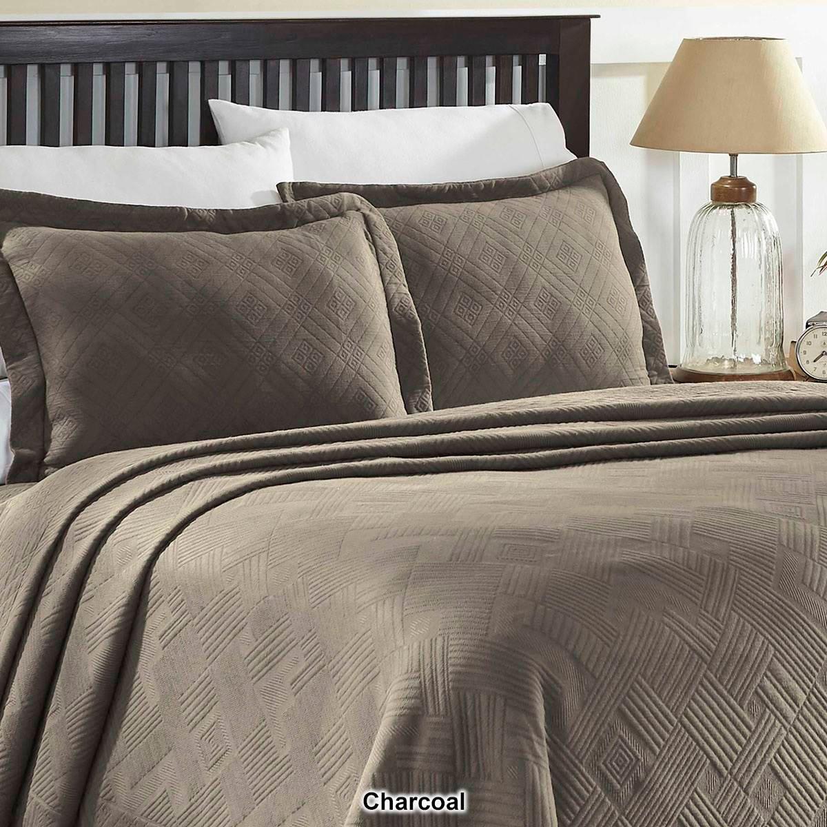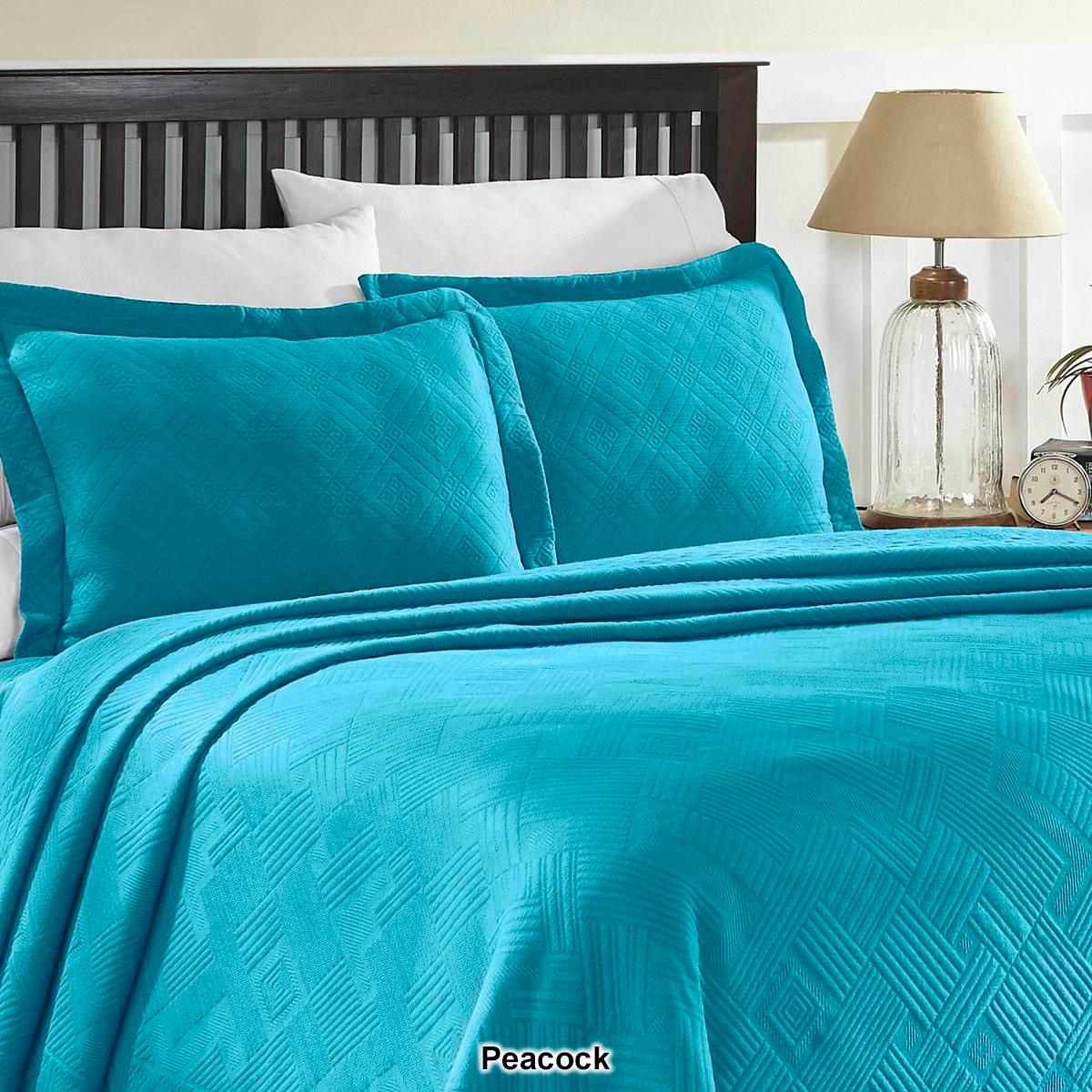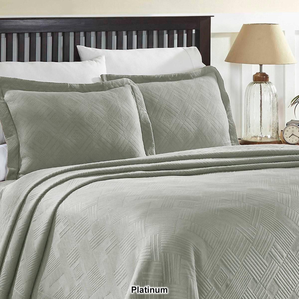 Description Drift into a peaceful sleep with the Superior Geometric Matelasse Scalloped bedspread set. Drape your bed in elegance with the highest quality, soft, premium cotton...