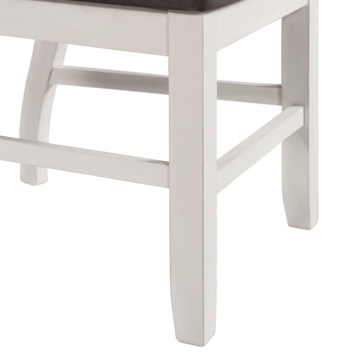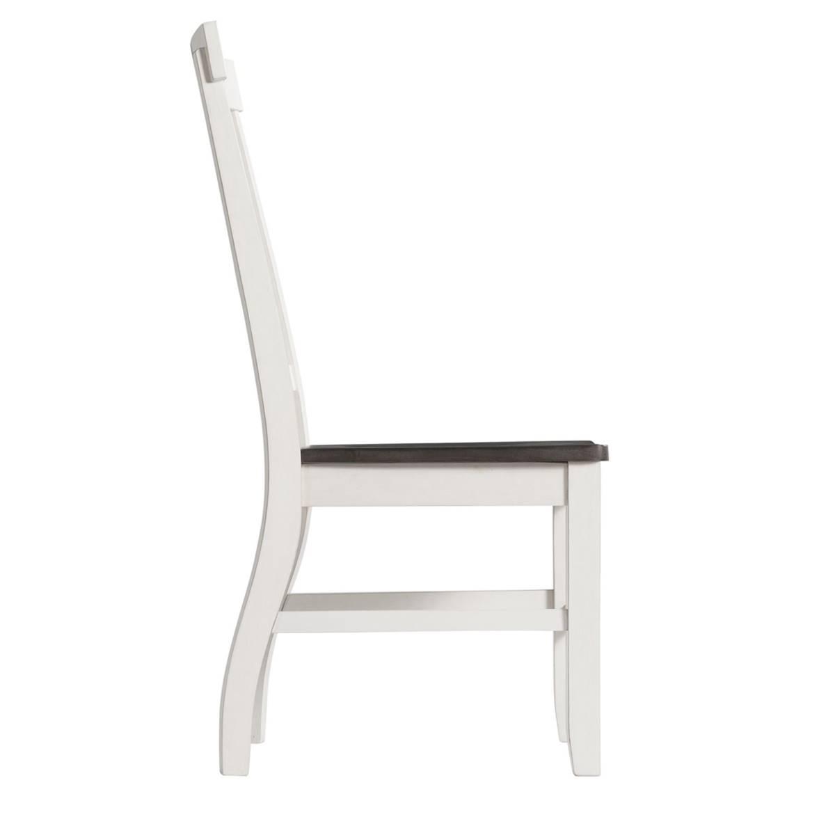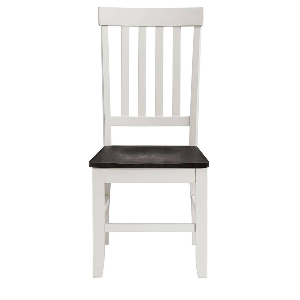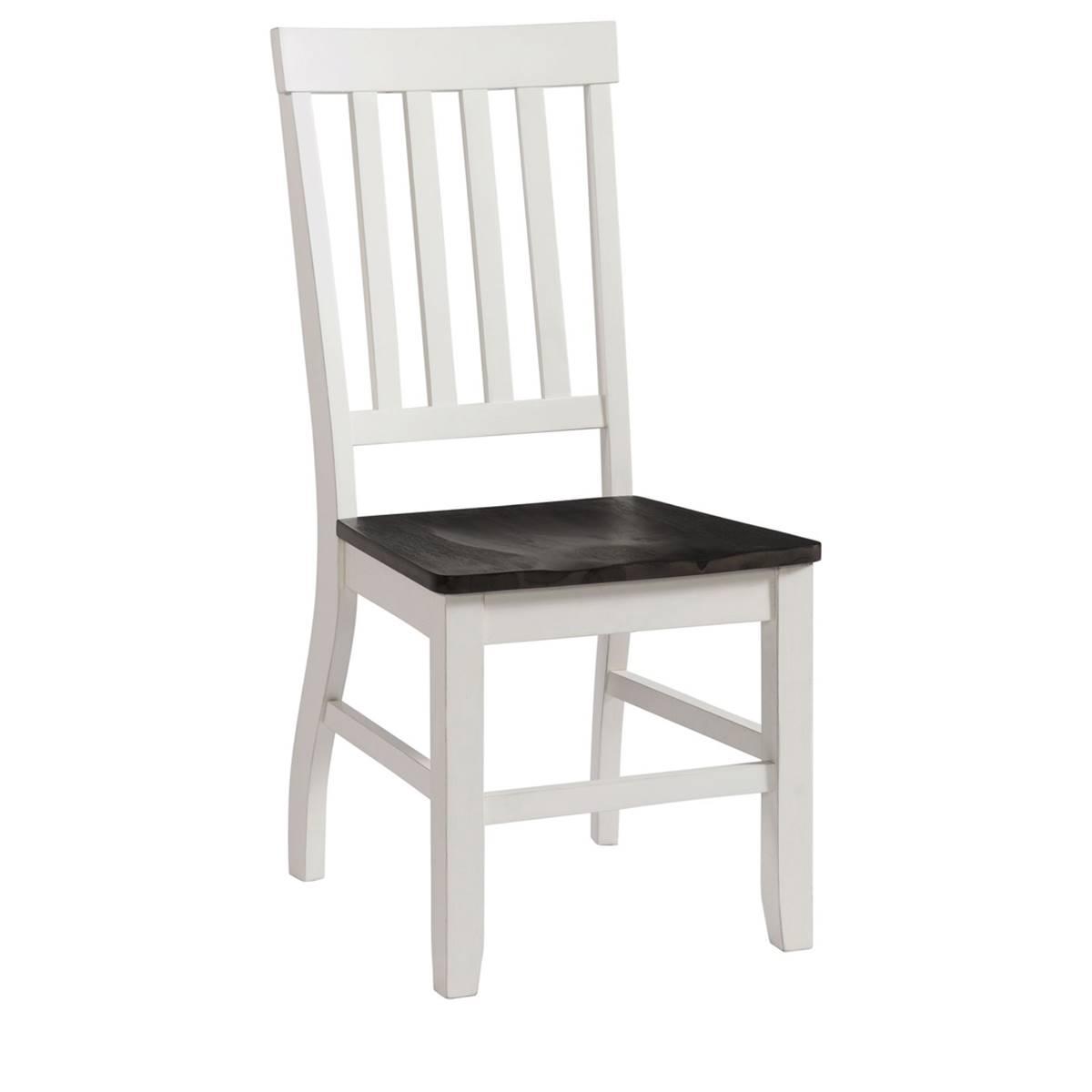 The Elements Kayla side chair set is the missing piece to your dining table! This duo comes with a wooden seat and a slat back, perfecting that cottage chic style. This standard dining height chair set comes in a two tone finish. The wire brush grey finish covers the seat while the transitional white covers the back and legs. Add this set to your dining room today to create the perfect transitional, cottage chic style.