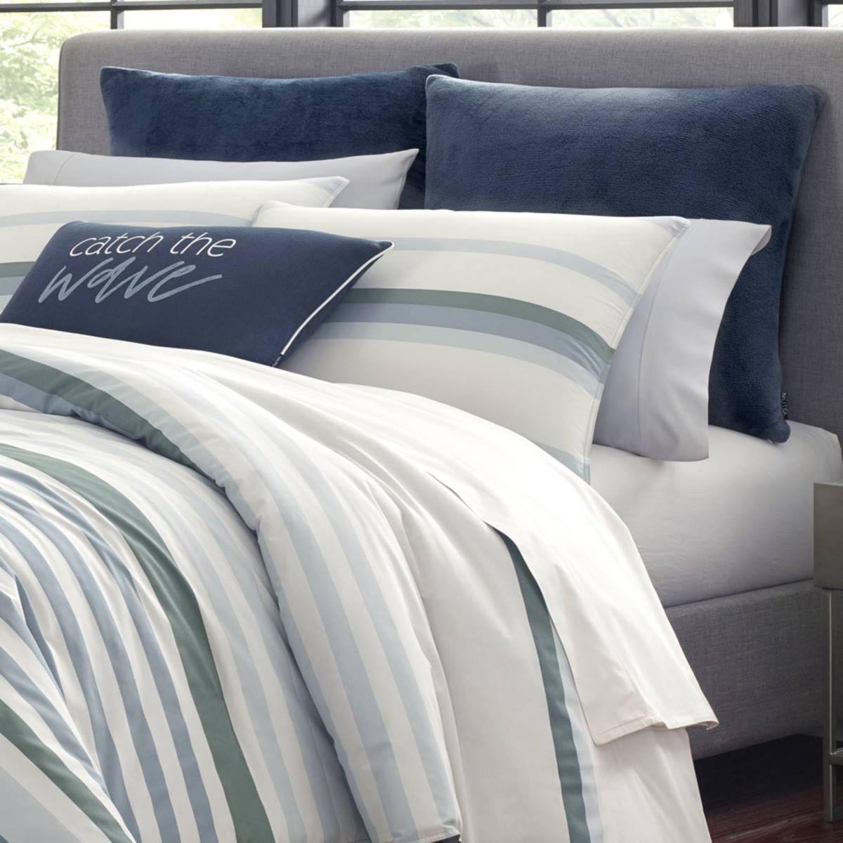 Description Elevate your bedding ensemble with the Nautica Lansier stripe comforter. The all-cotton comforter features a classic white and grey palette of stripes on the face and...