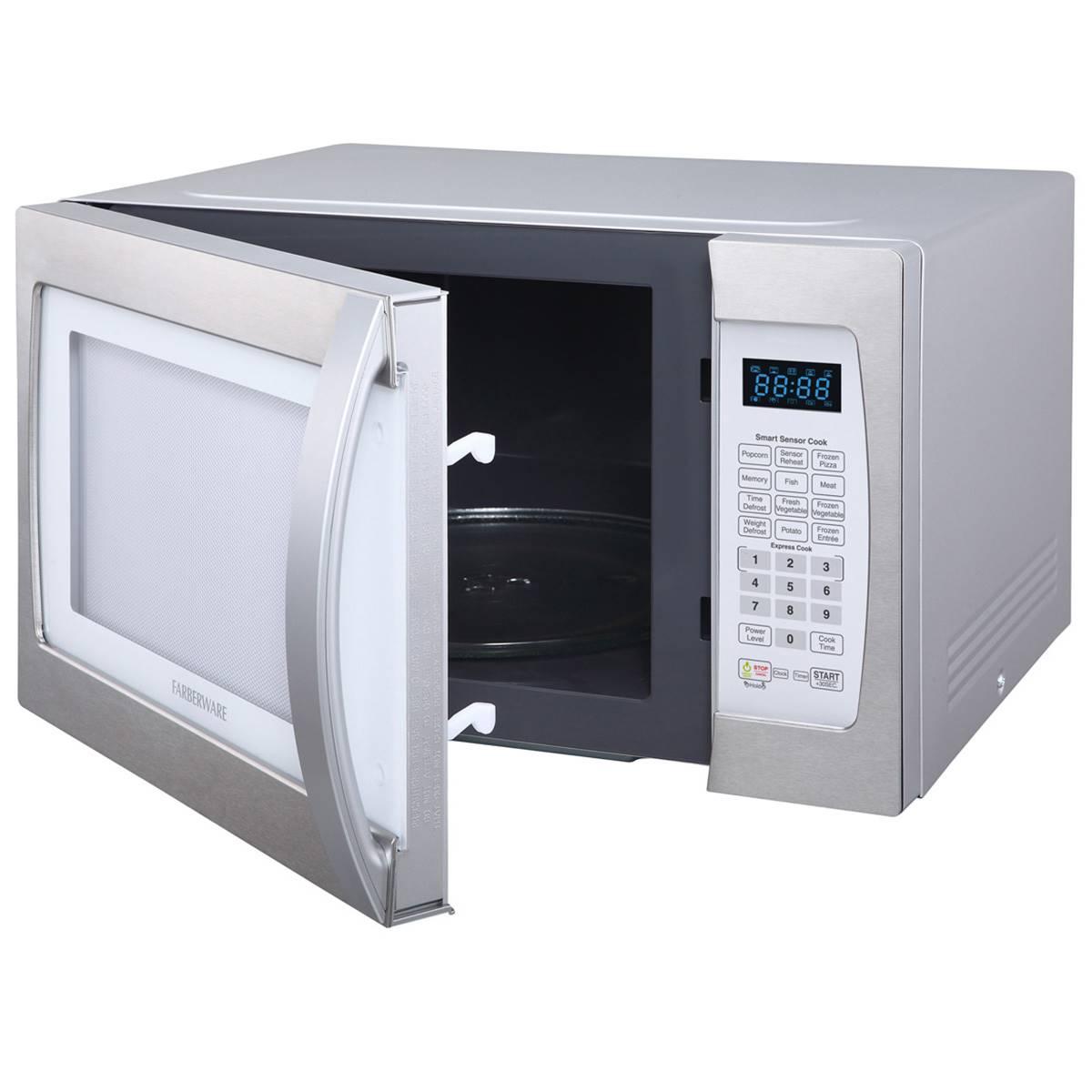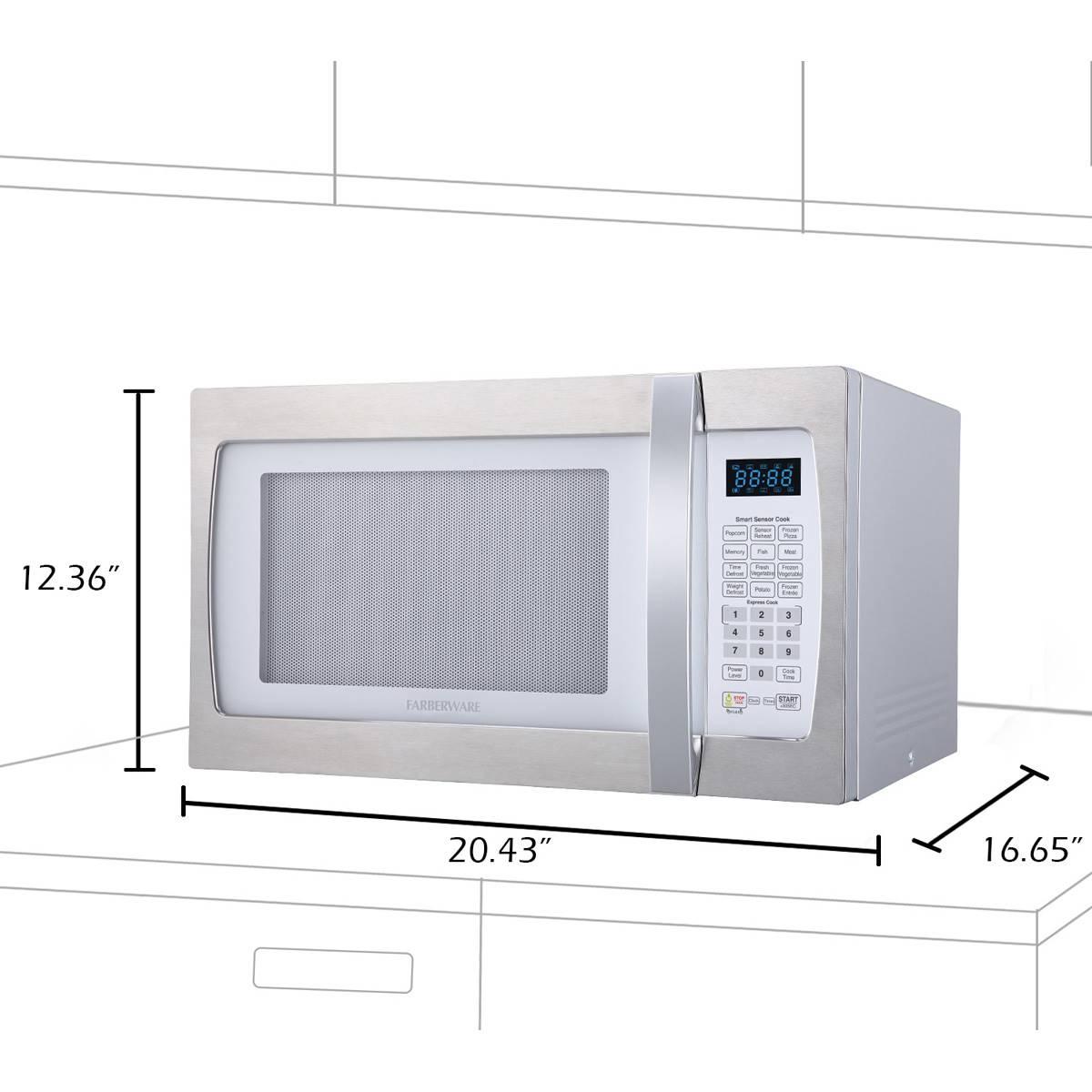 Description The Farberware® Professional 1.3 Cubic Foot 1100 Watt Microwave Oven with Smart Sensor Cooking delivers power, style, and convenience with a sleek, Platinum design...