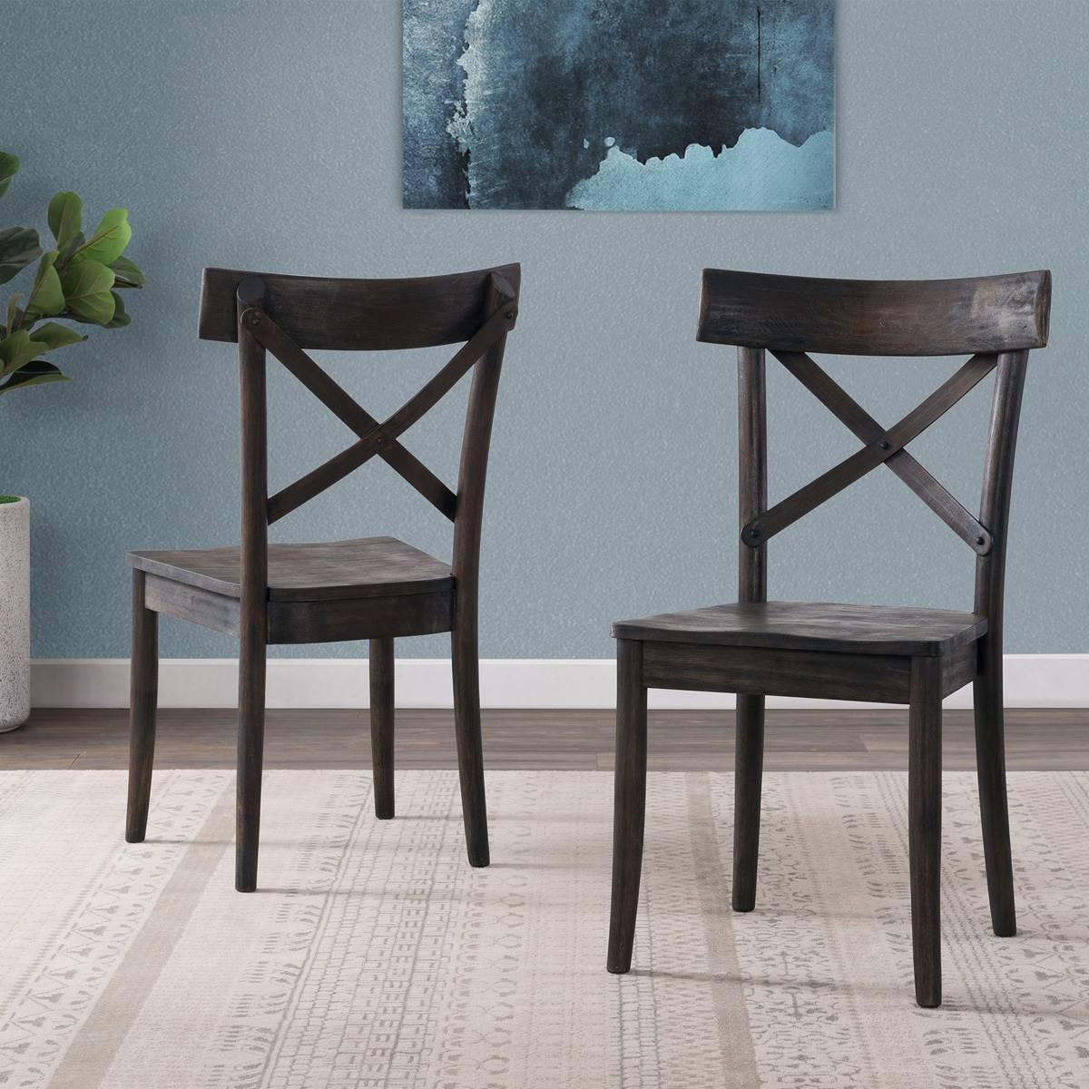 Description The Elements Coronado wooden side chair set will pair perfectly with your dining tables! This set includes two wooden cross back chairs that add a little extra flair...