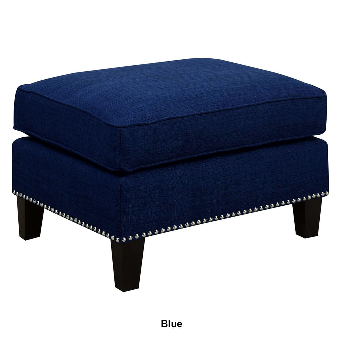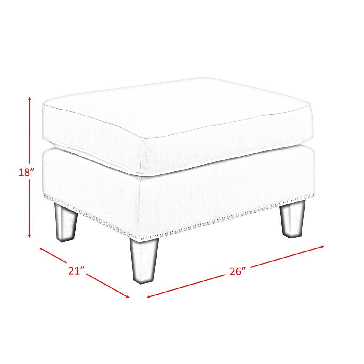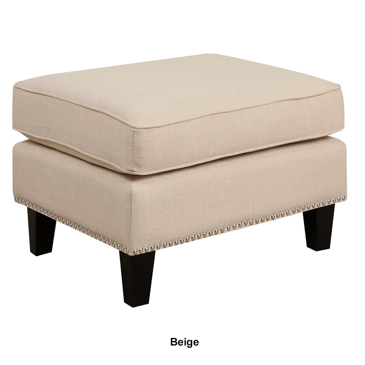 The Elements Erica ottoman features a refreshing combination of contemporary design with a touch of vintage flare. This ottoman is adorned with chic nailhead trim and dressed in fashionable fabric upholstery.