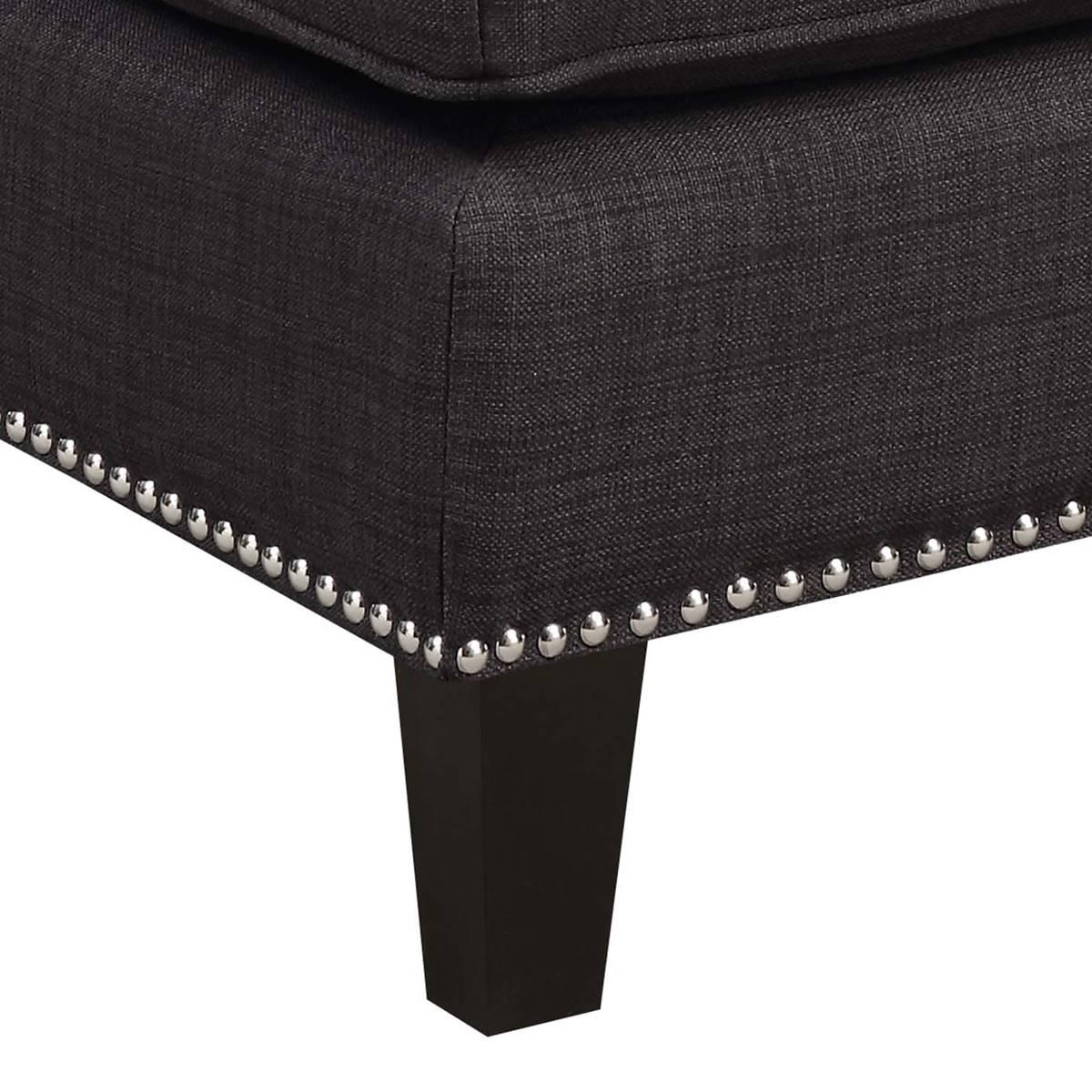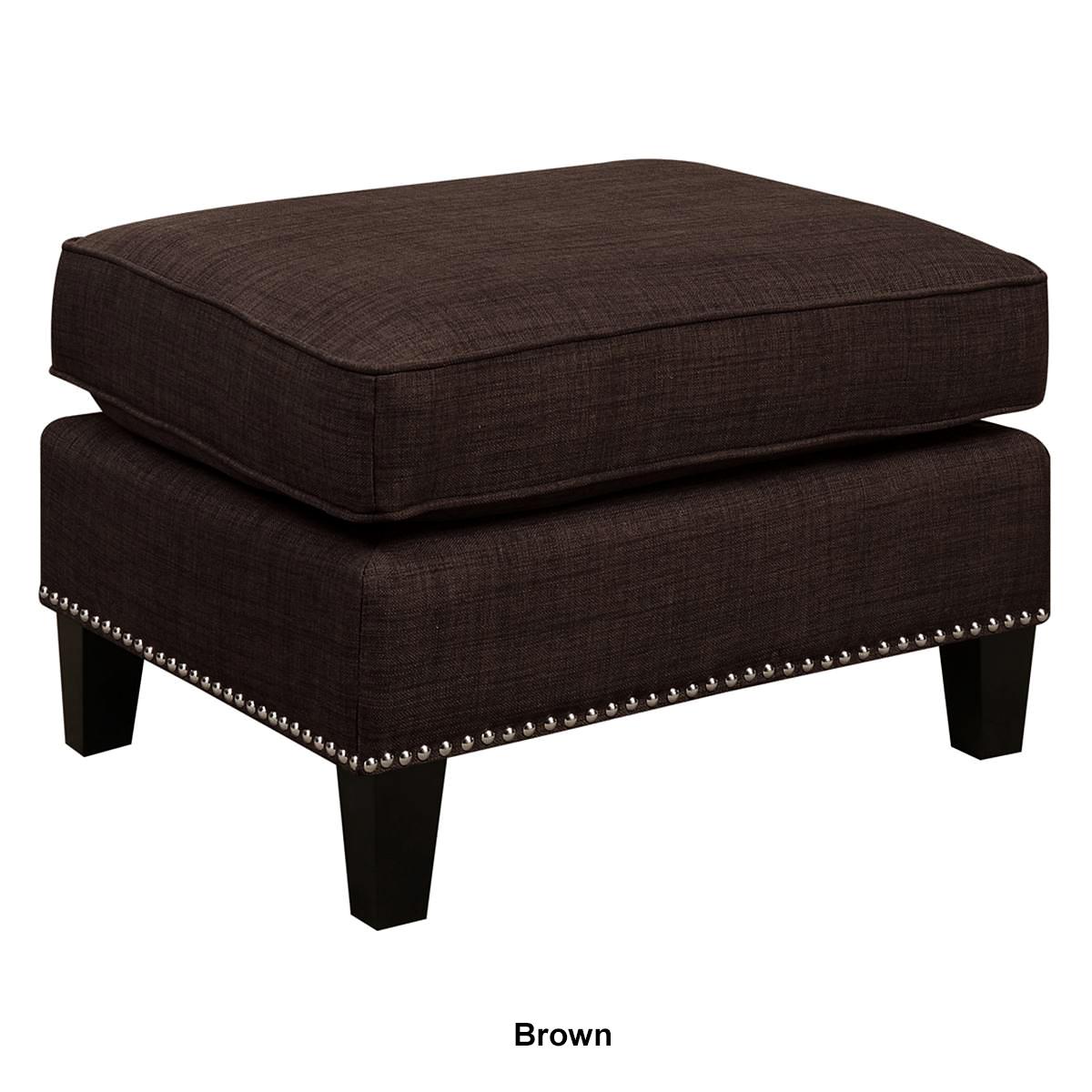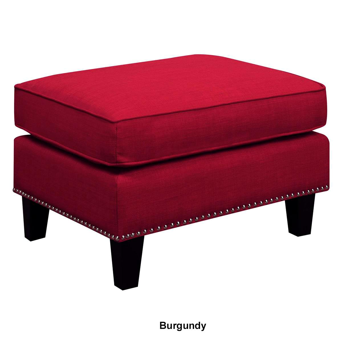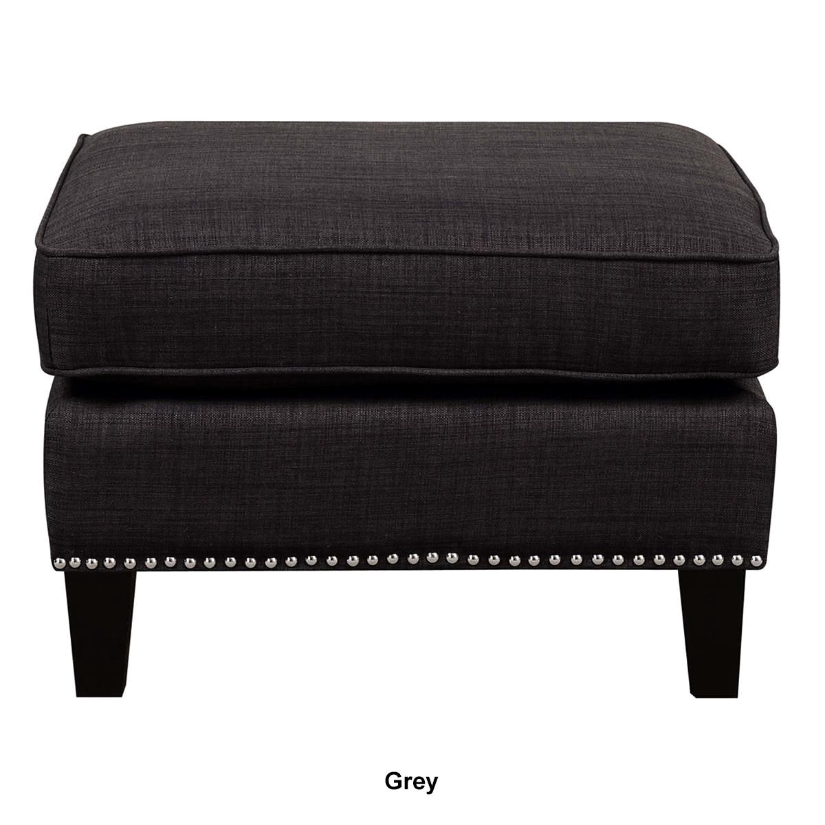 The Elements Erica ottoman features a refreshing combination of contemporary design with a touch of vintage flare. This ottoman is adorned with chic nailhead trim and dressed in fashionable fabric upholstery.
