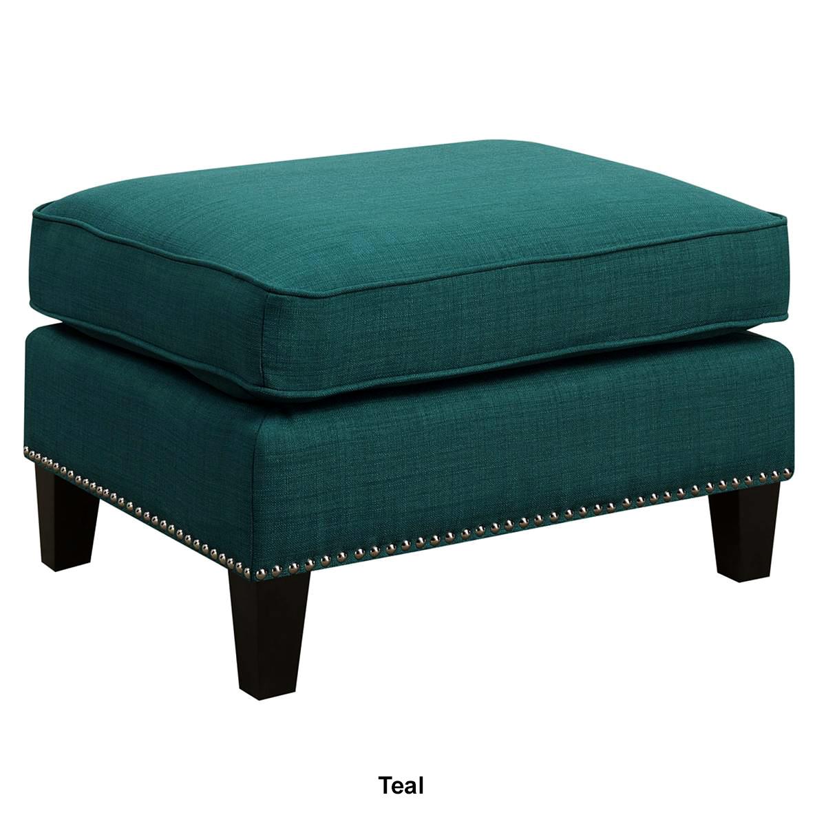 Description The Elements Erica ottoman features a refreshing combination of contemporary design with a touch of vintage flare. This ottoman is adorned with chic nailhead trim and...