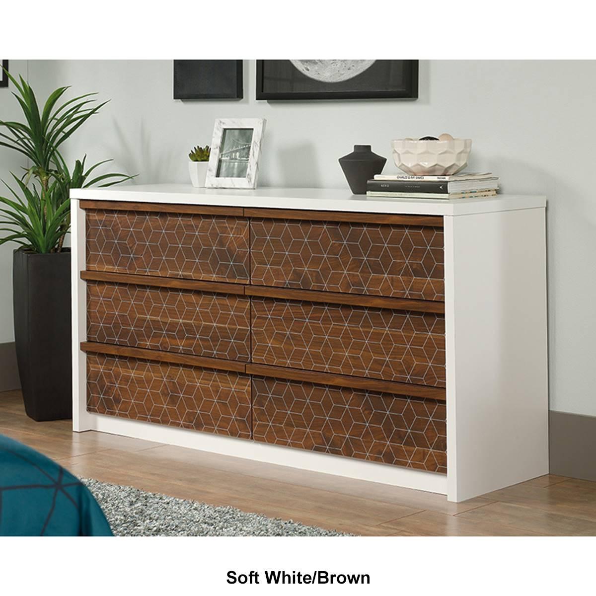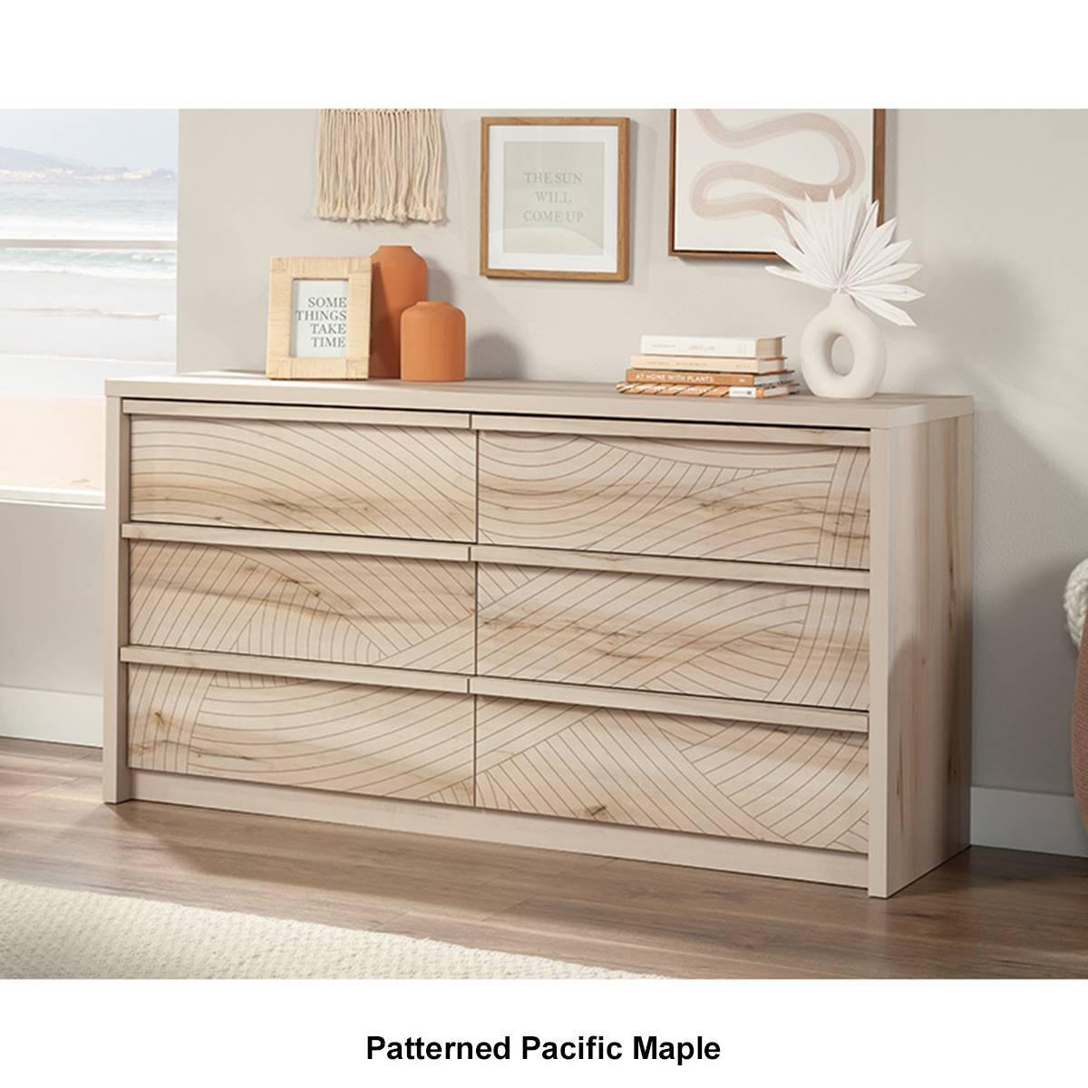 Sauder Harvey Park six drawer dresser features easy-glide drawers, spacious storage for shirts, sweaters, and jeans. Drawer fronts feature geometric line pattern. Patented T-lock assembly system for easy assembly.This item requires oversize delivery. Please refer to the Order Summary in the Shipping step at checkout for delivery charge.Please measure to make sure it will fit in your space.