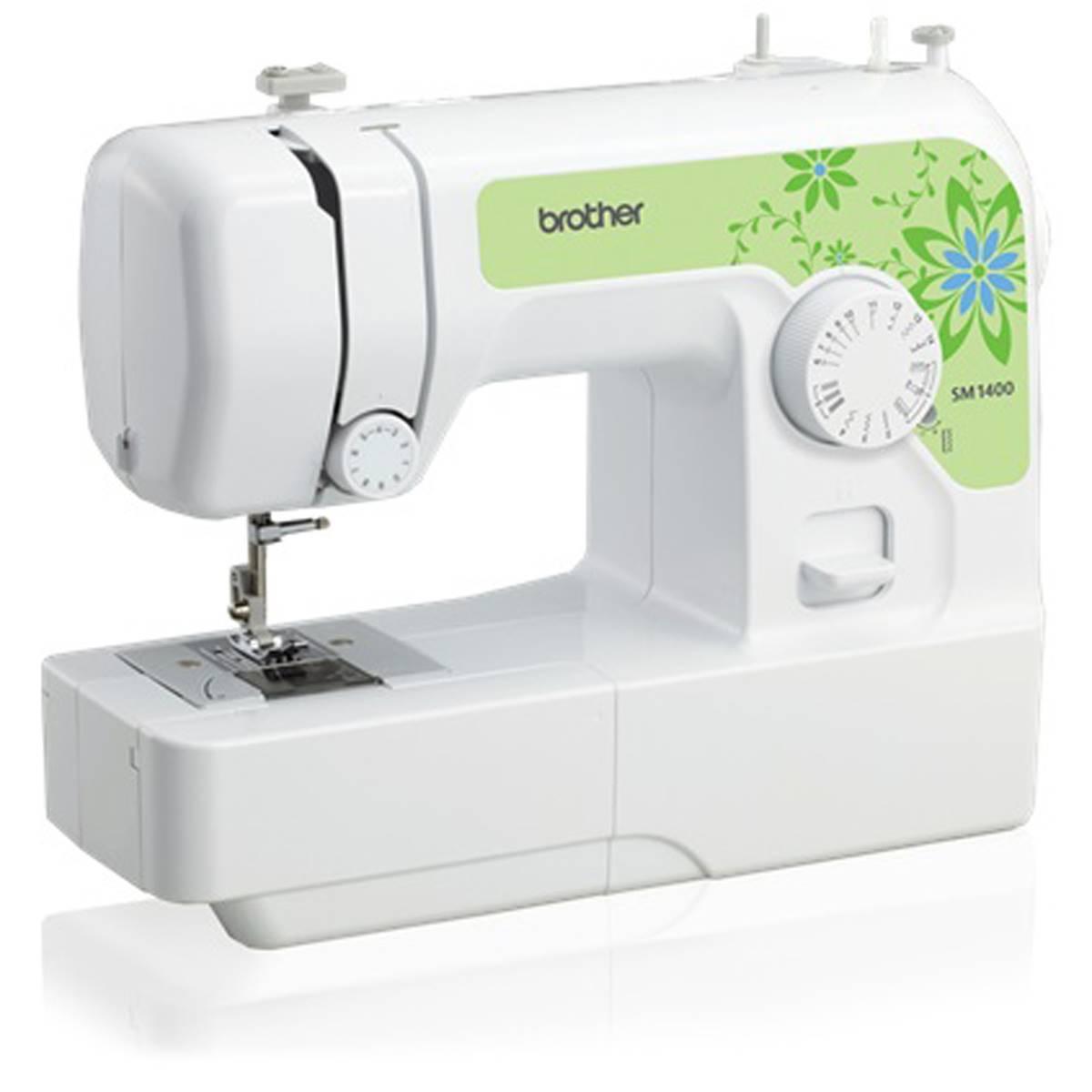 The SM1400 offers the perfect set of features for everyday sewing and mending, at an affordable price. Lightweight yet full-sized, this machine can easily fit on a table or desk, then be carried and stored away when not in use. Included are 14 stitches for blind hems, stretch stitches, buttonholes, zipper insertion, and more. Selecting your stitches is as easy as turning the dial, and the tension control dial and reverse sewing lever give you added control at your fingertips. The four included quick-change presser feet allow you to easily insert zippers, create buttonholes, sew on buttons, and handle general sewing. This machine also has a built-in easy needle threader, jam-resistant Quick-Set top drop-in bobbin, clear-view bobbin cover and bobbin, automatic bobbin winding system, and a free arm for sewing cuffs and sleeves. Included are an instructional DVD to help you get started, and an English and Spanish user manual.This item requires oversize delivery. Please refer to the Order Summary in the Shipping step at checkout for delivery charge.