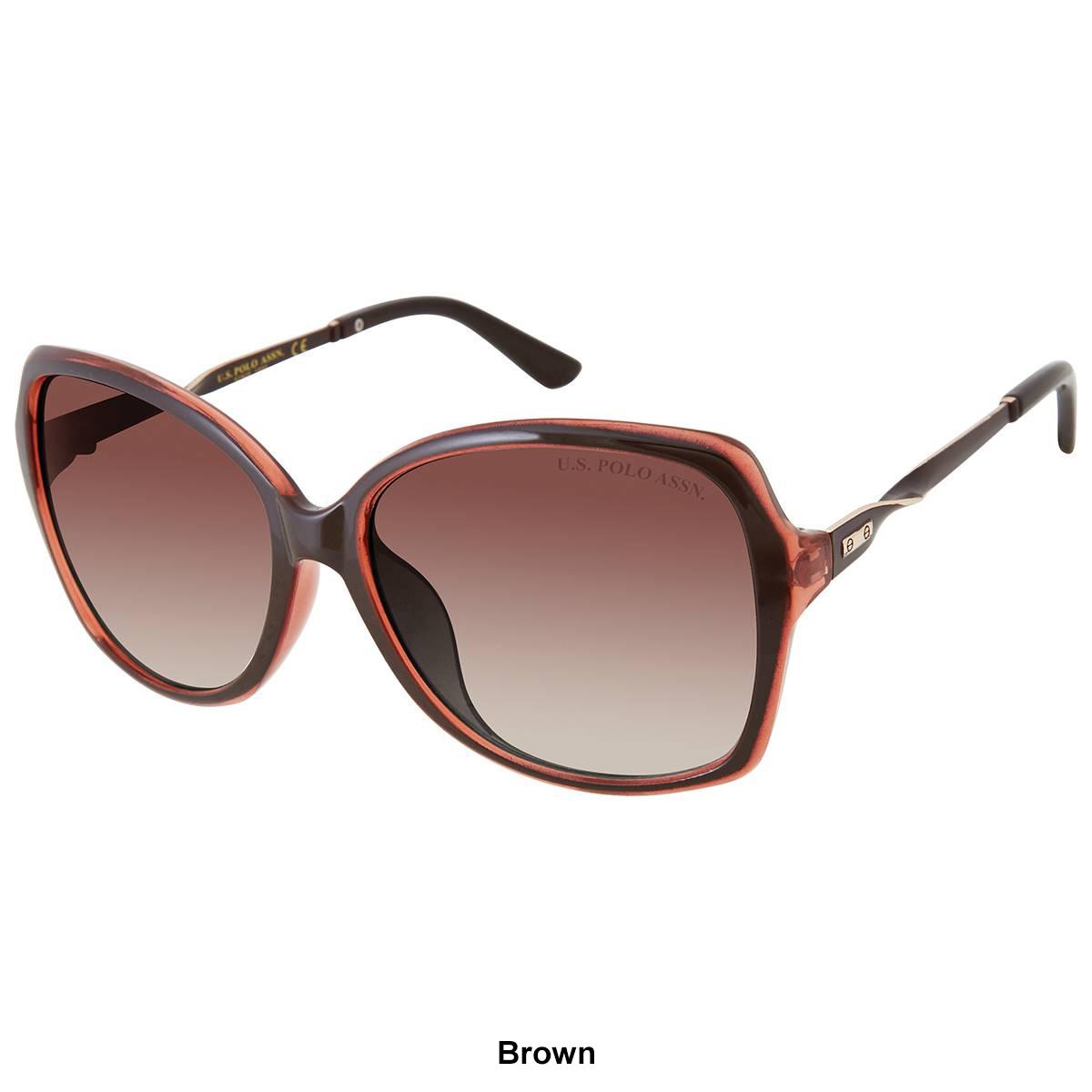 The Womens U.S. Polo Assn.® plastic metal twist temple sunglasses are modern with a unique detail. They features a chic twisted temple.