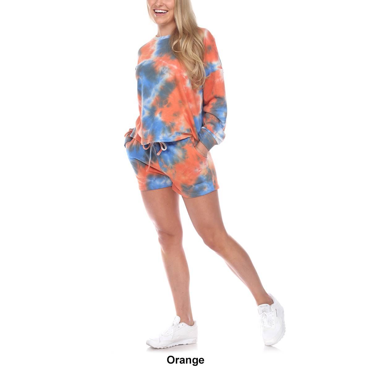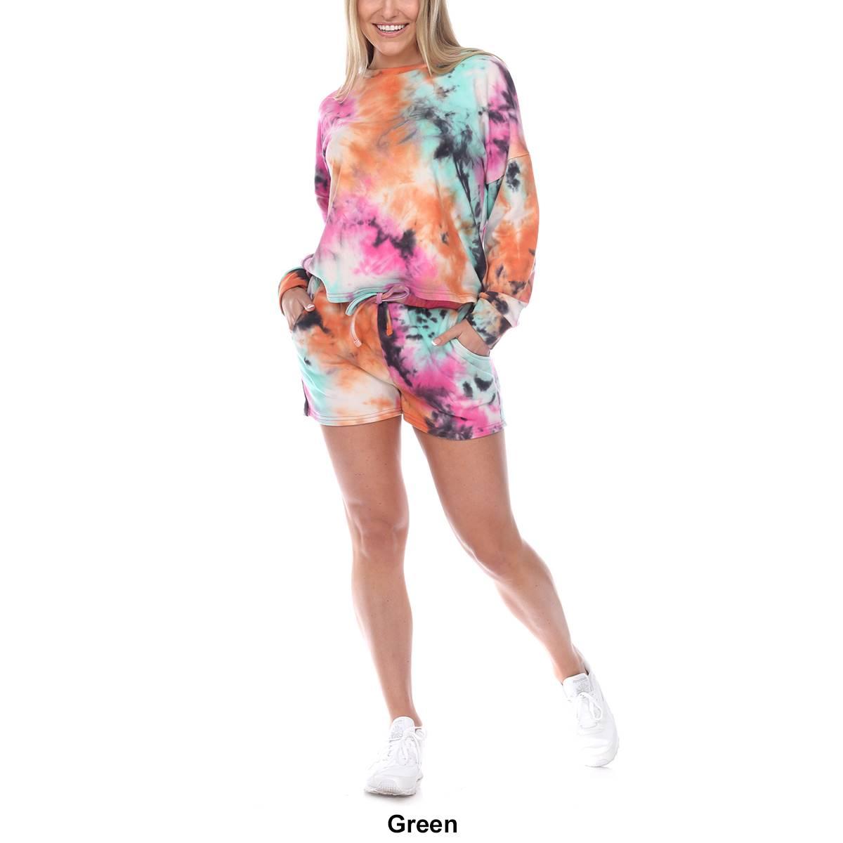 Description This Womens White Marke tie dye lounge set is effortlessly cool designed with a top and shorts that match. Features a top with long sleeves and crew neckline with...