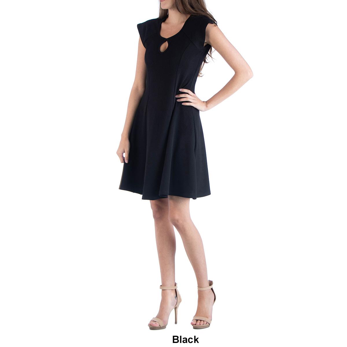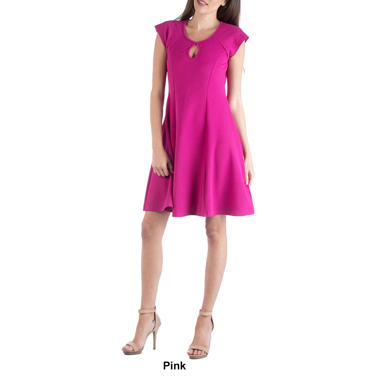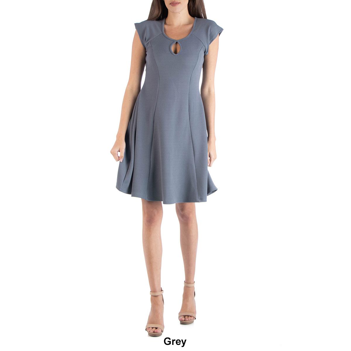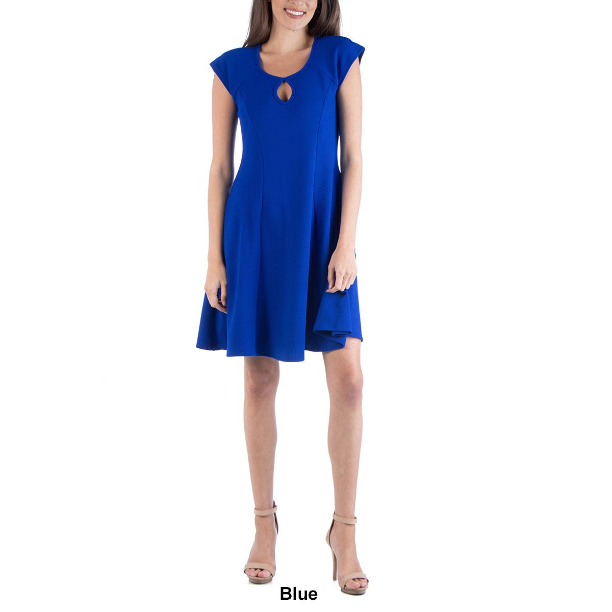 Description This Womens 24/7 Comfort Apparel fit & flare dress features capped sleeves, a scoop neckline, soft flare hemline, and cute keyhole neckline detail. It provides a...