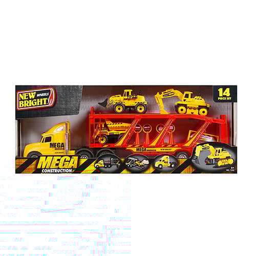 Description The New Bright® 22" Free Wheel Mega Construction Hauler Set has everything your little construction worker needs to get the job done! Includes an excavator, loader,...