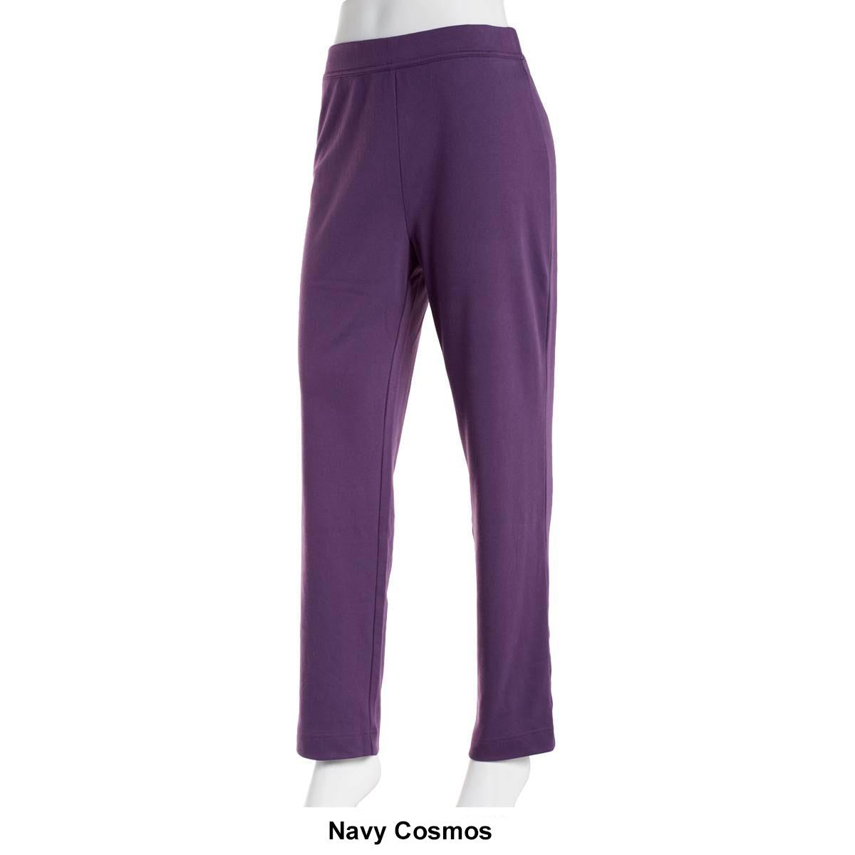 Description Stay casual and confident in these Womens Hasting & Smith pull on pants. The solid knit bottoms offer slim legs and an elastic waist. Inseam: 28.5" Care: Machine...