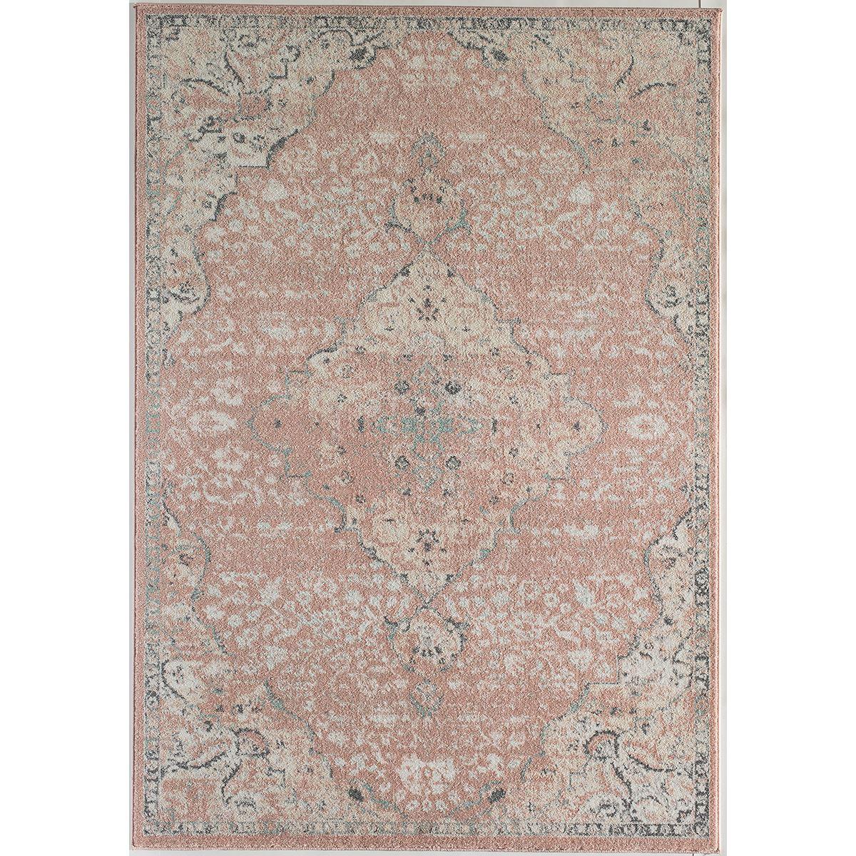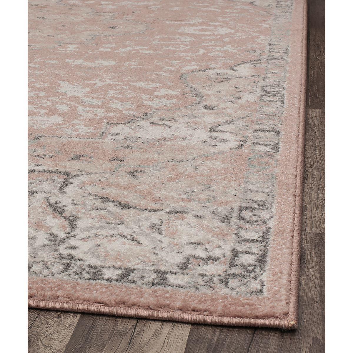 The pink Amaranth rectangle area rug from the Rugs America™Hailey collection has curved lines on this subtly distressed rug that give its majestic motif movement. It is designed in pink, grey, and ivory, and made in polypropylene giving your space a note of grandeur. This rug is power-loomed and crafted with a half-inch pile, sure to set an impressive scene in your living or dining room.