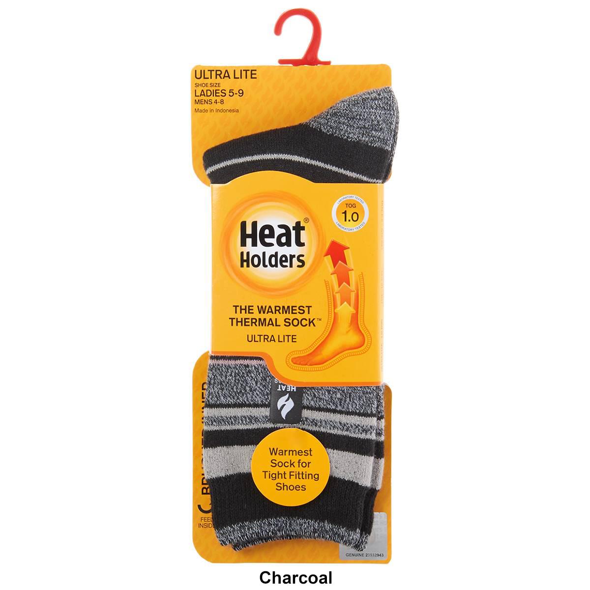 Womens Heat Holders® ULTRA LITE™ Stripe Crew Socks - Charcoal