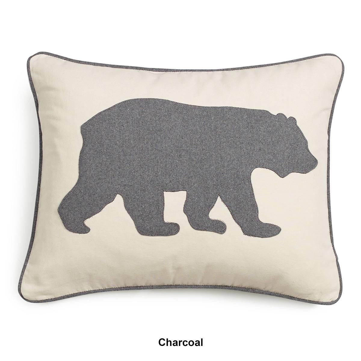 A perfect décorative accent for your bed or couch, the Eddie Bauer Bear pillow features a graphic silhouette of a bear in profile cut from felt and appliqued to the face. This ivory cotton twill pillow is corded with a contrast color to perfectly match any bedding set or couch.