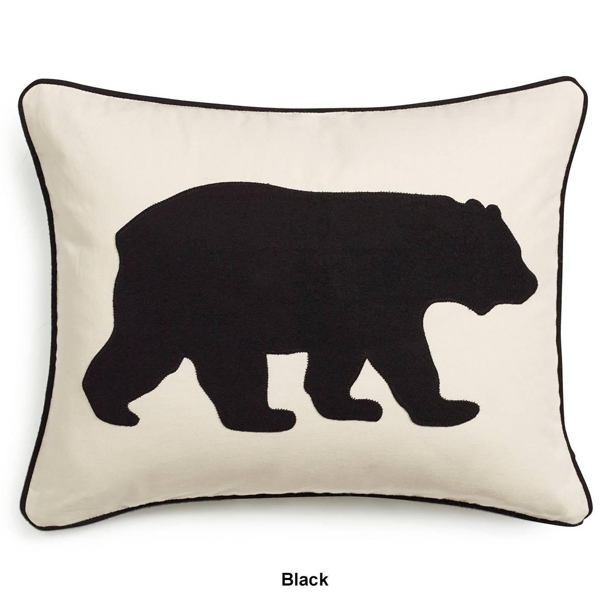 Description A perfect décorative accent for your bed or couch, the Eddie Bauer Bear pillow features a graphic silhouette of a bear in profile cut from felt and appliqued to the...